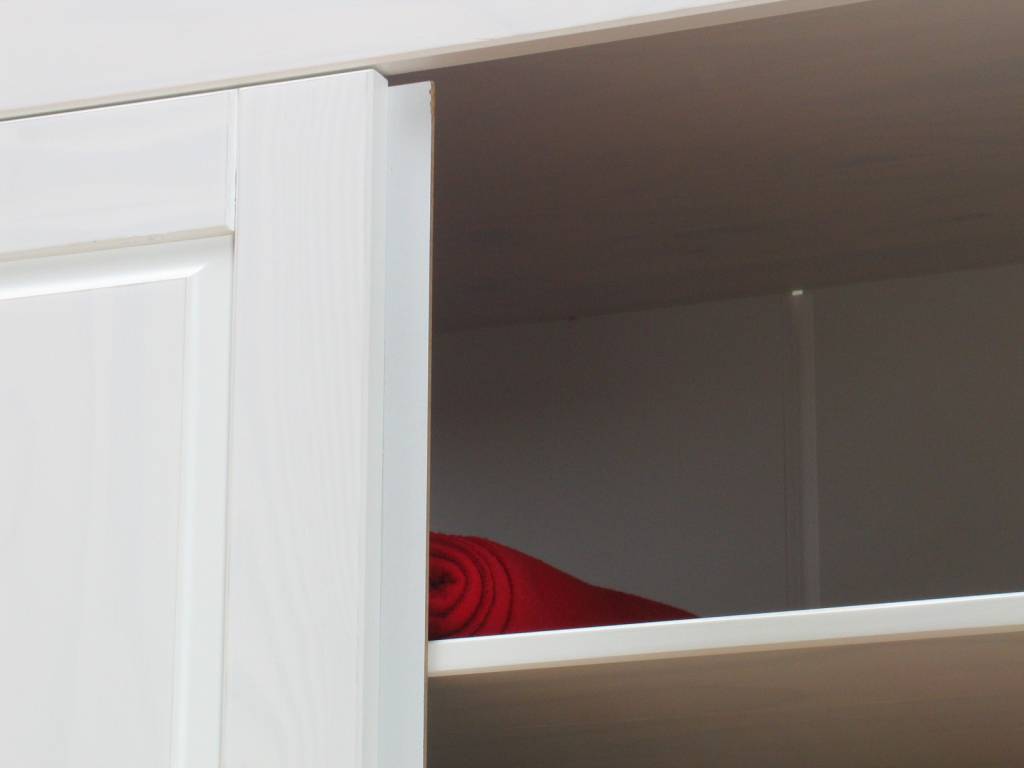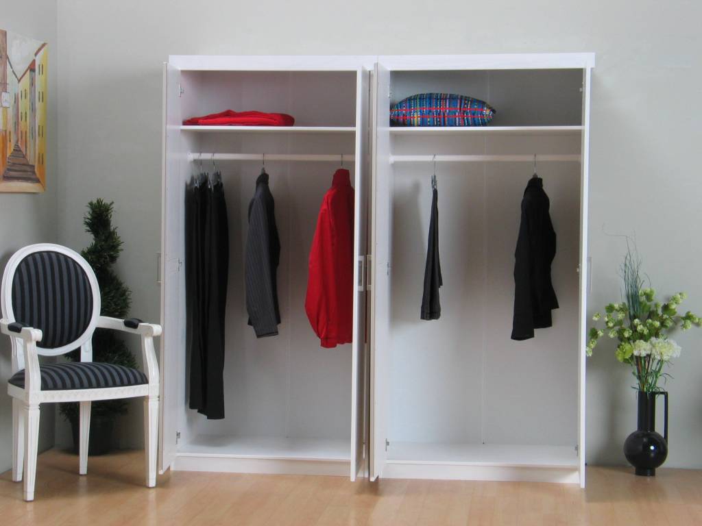 Per kast, achter de deuren: een hoedenplank en een kledingstang