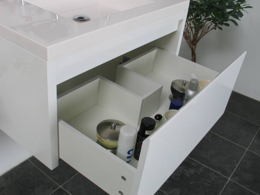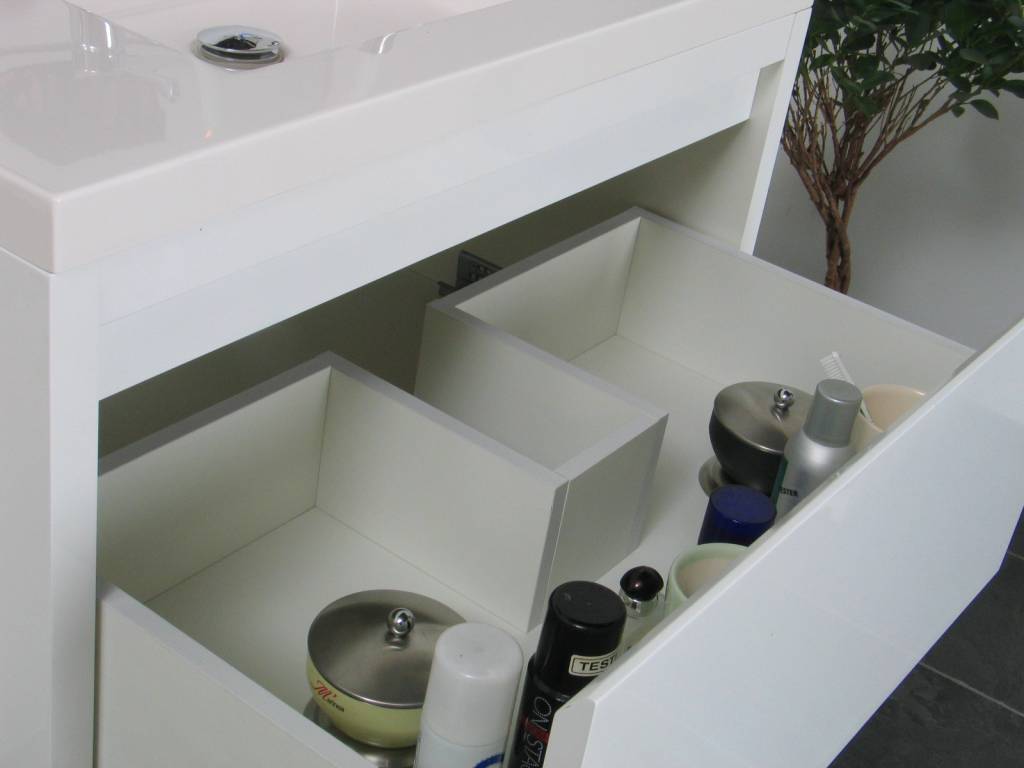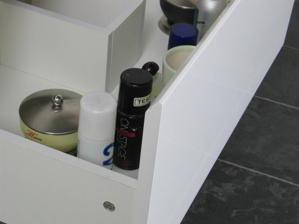De zijkanten van de wastafelonderkast zijn 3 cm dik, en de fronten zijn 2 cm dik.