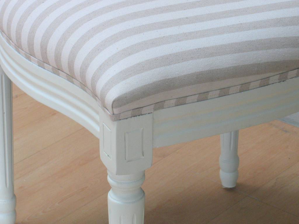 Wit antiek (creme) met beige / zandkleurig gestreepte bekleding