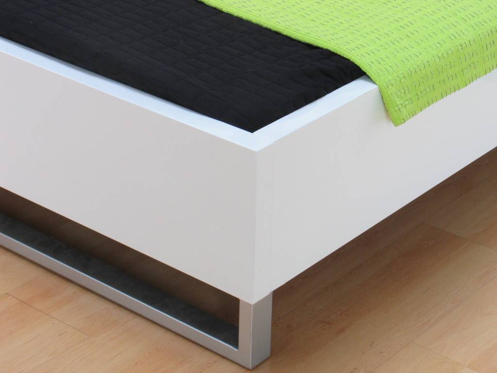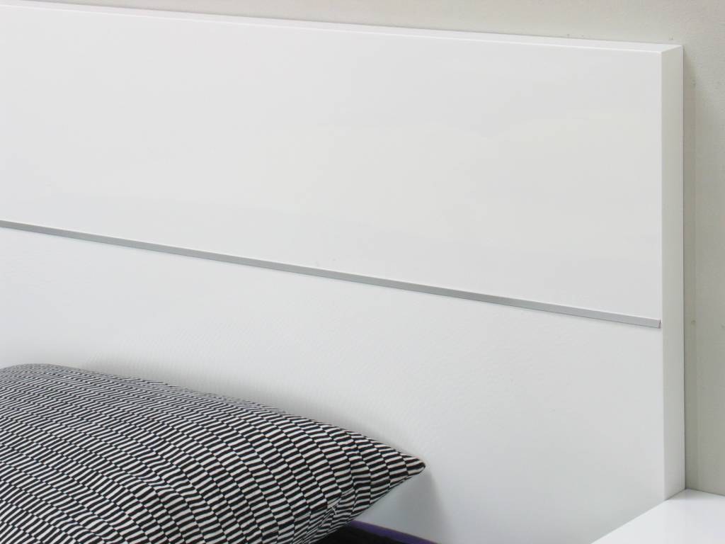Dit moderne, strakke tweepersoons bed in wit hoogglans oogt niet alleen mooi, het is ook zeer stevig en wordt geleverd inclusief goede gebogen lattenbodem! Het bed heeft een design uitstraling dankzij het mooie hoofdeinde met een metaalstreep!