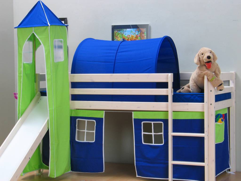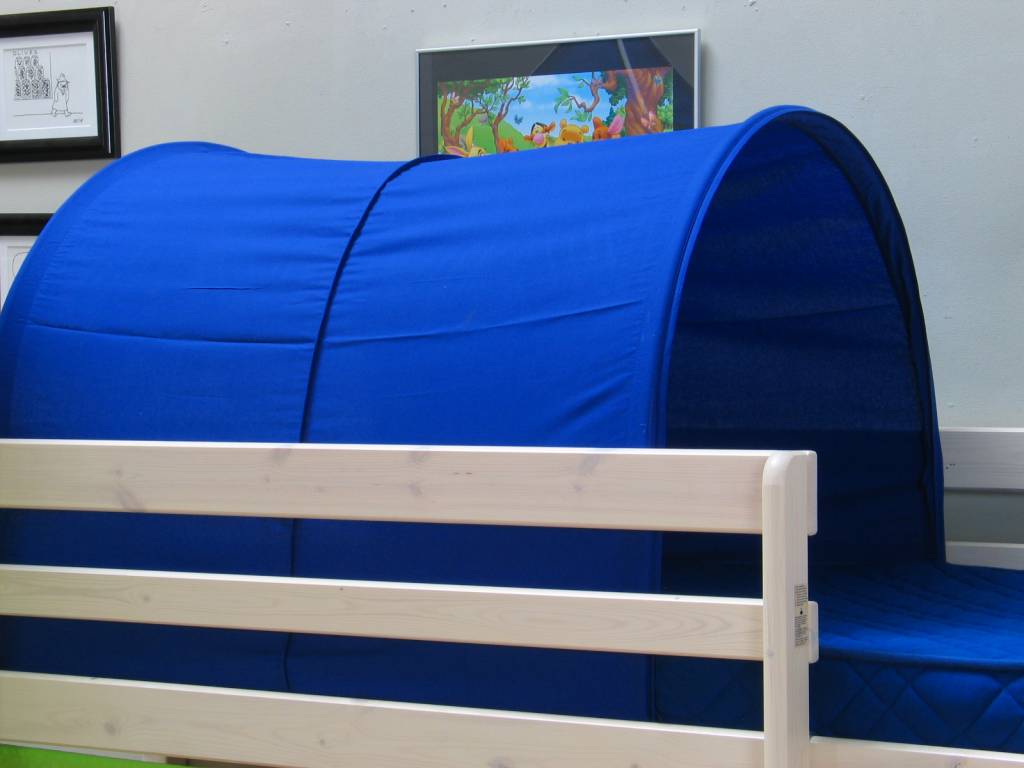 Een blauwe bedtunnel uit de kinderserie Thuka is de finishing touch voor de bedden uit de gelijknamige serie! Maak de kinderkamer compleet met de blauw/groene tentdoeken en toren uit de serie Thuka.