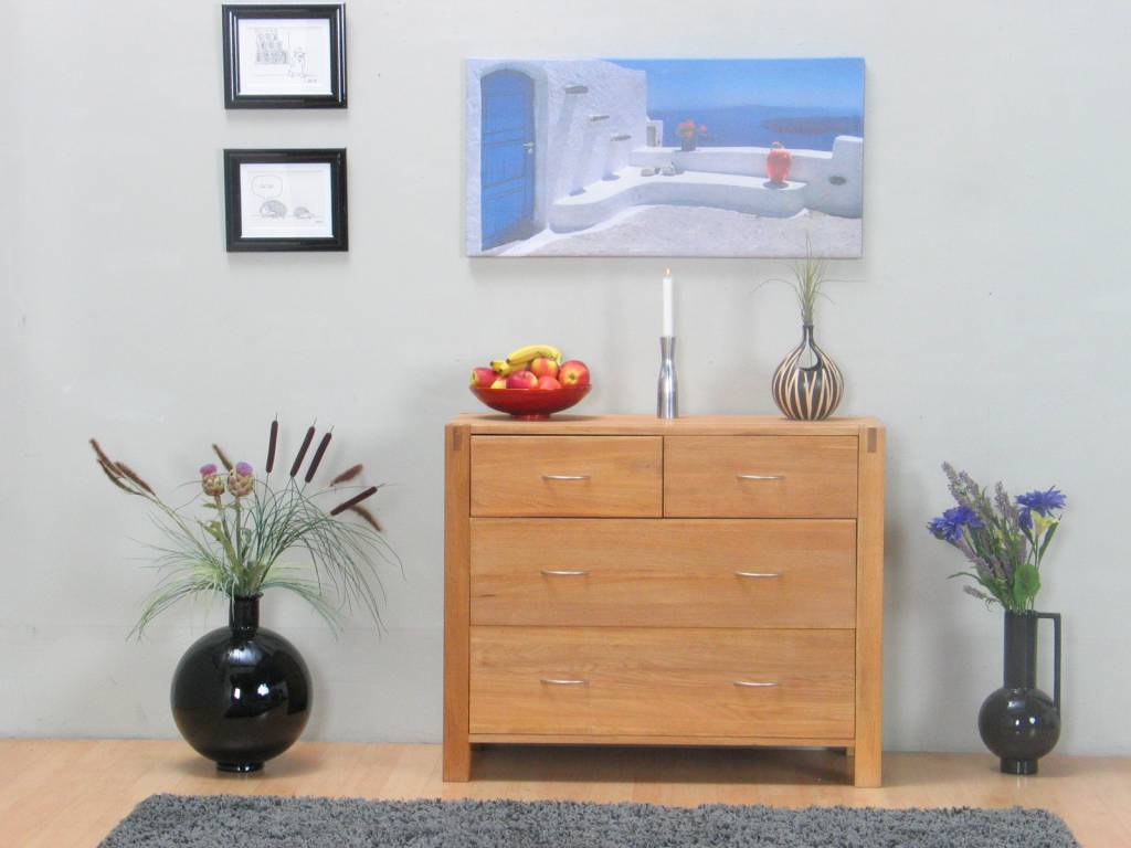 Leuke eiken kommode Derby, handig voor in bijvoorbeeld de slaapkamer. De eiken kommode Derby laat zich uitstekend combineren met de andere eiken meubels uit de serie zoals de eiken dressoirs.