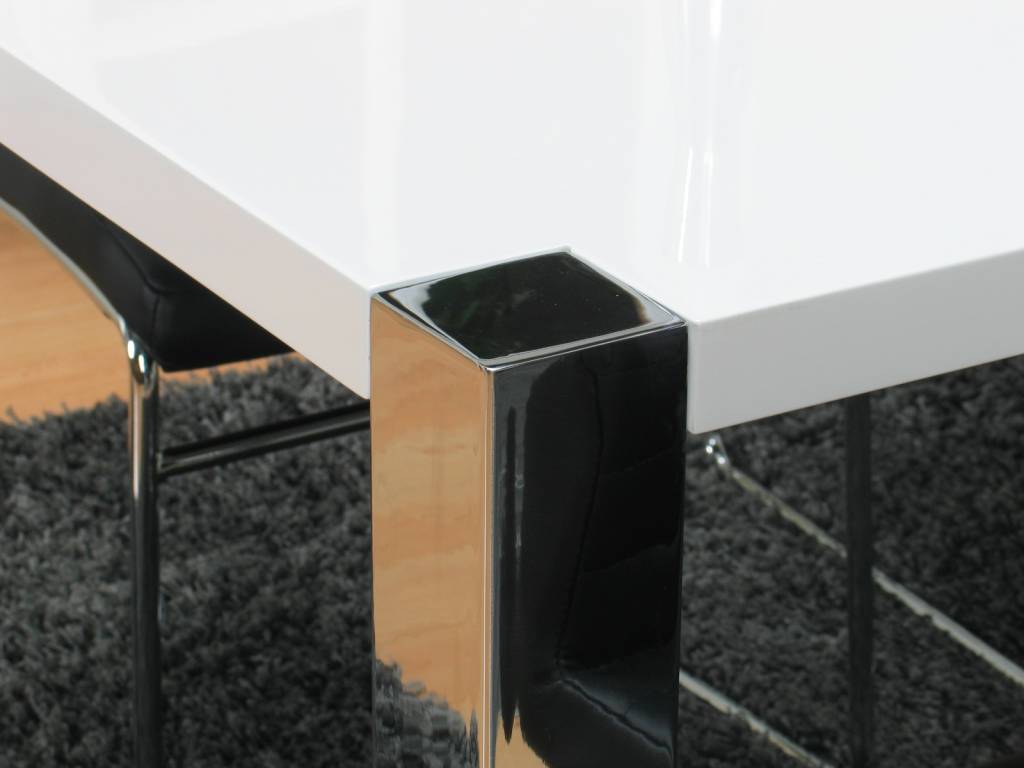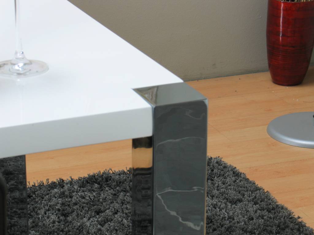 - Witte tafel, hoogglans gelakt met verchroomd metalen onderstel