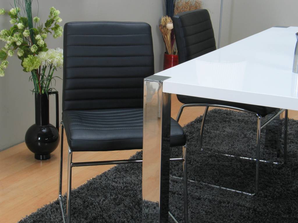 - Stoelen met zwart kunstlederen bekleding en verchroomd metalen onderstel