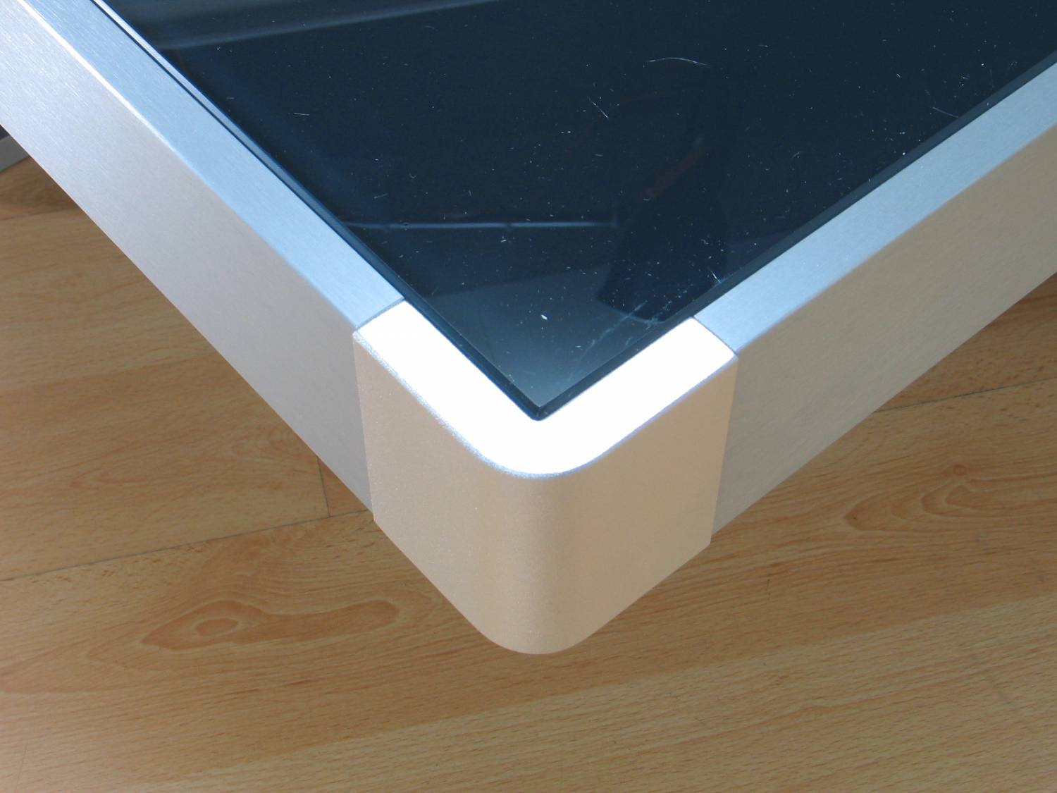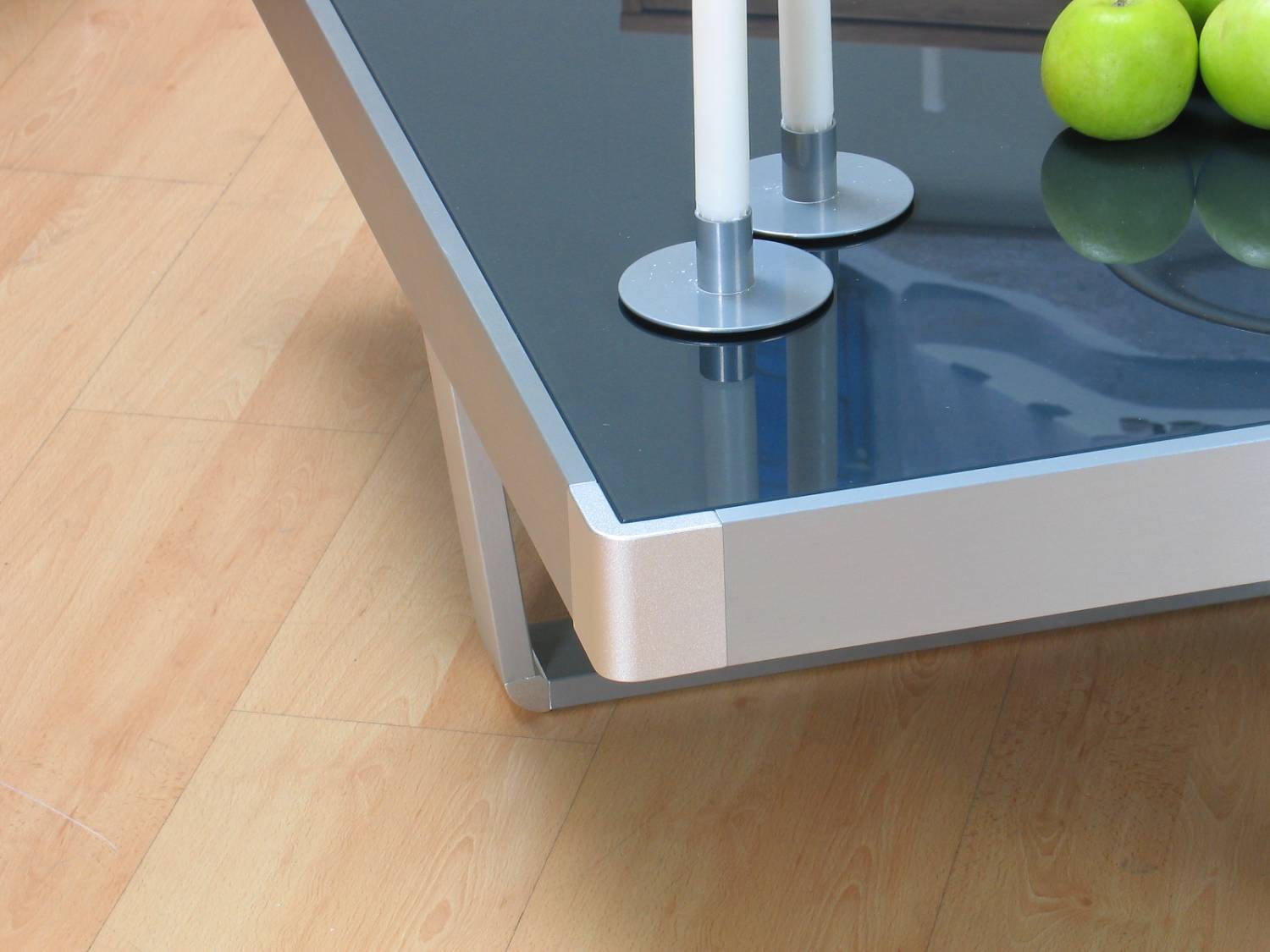 Design salontafel Newcastle met zwart glas en aluminium