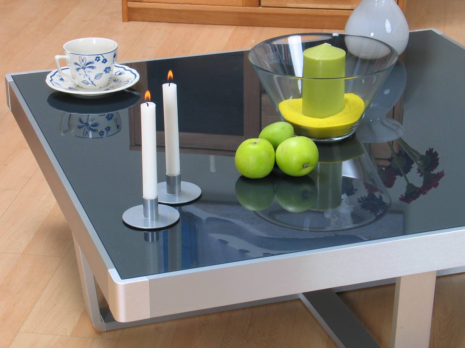 Vermelde prijzen zijn uiteraard inclusief BTW en gelden per omschreven meubel, niet voor eventuele decoraties.Design salontafel Newcastle met zwart glas en aluminium