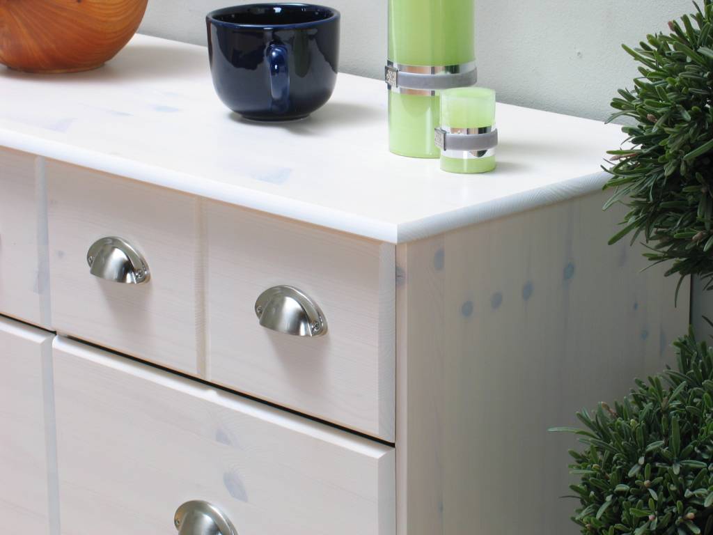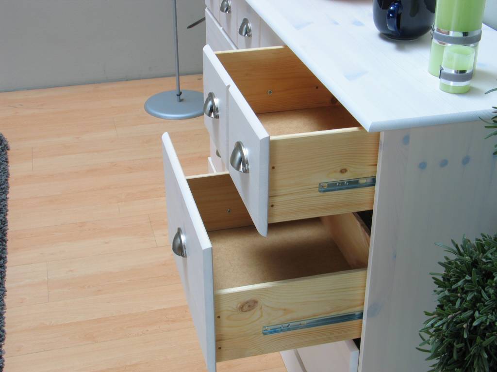 Fraai grenen dressoir met 9 lades uit de serie Terra. Een leuk wit grenen design met karakteristieke handgrepen: dit dressoir gaat hoge ogen gooien waar in huis u het ook neerzet!