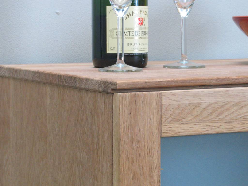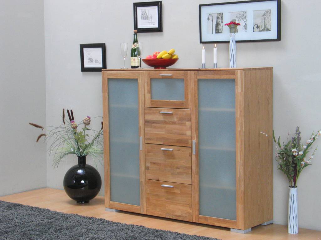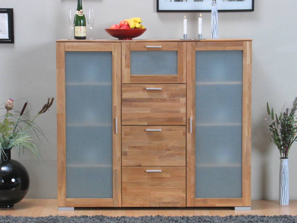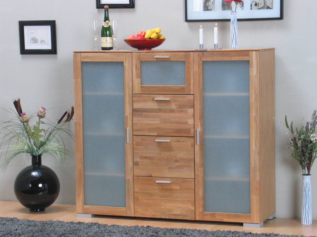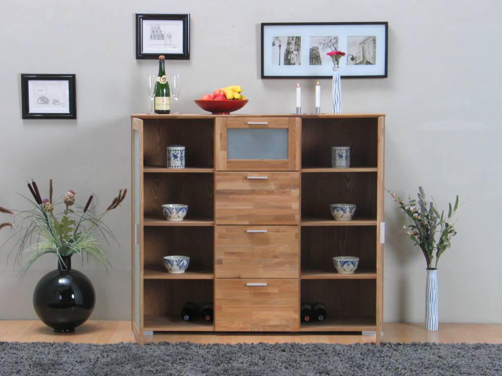 Ruim eiken dressoir Helsinki; dit leuke eiken dressoir uit de gelijknamige serie is 119 cm hoog en 135,5 cm breed en heeft met 4 lades en 2 deuren lekker veel opbergruimte. Combineer gerust met een ander meubel uit de eiken serie!