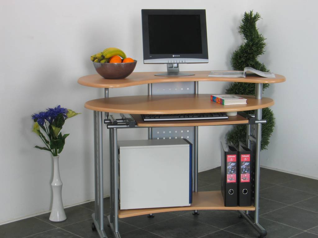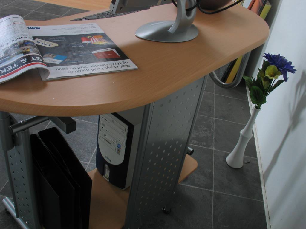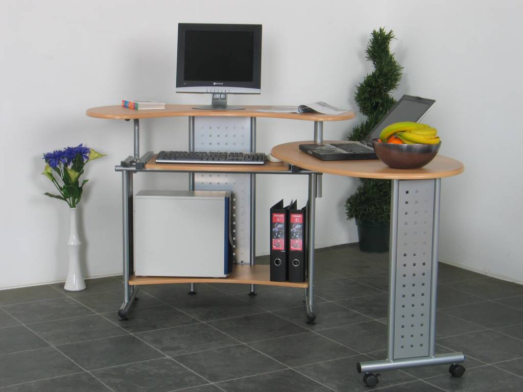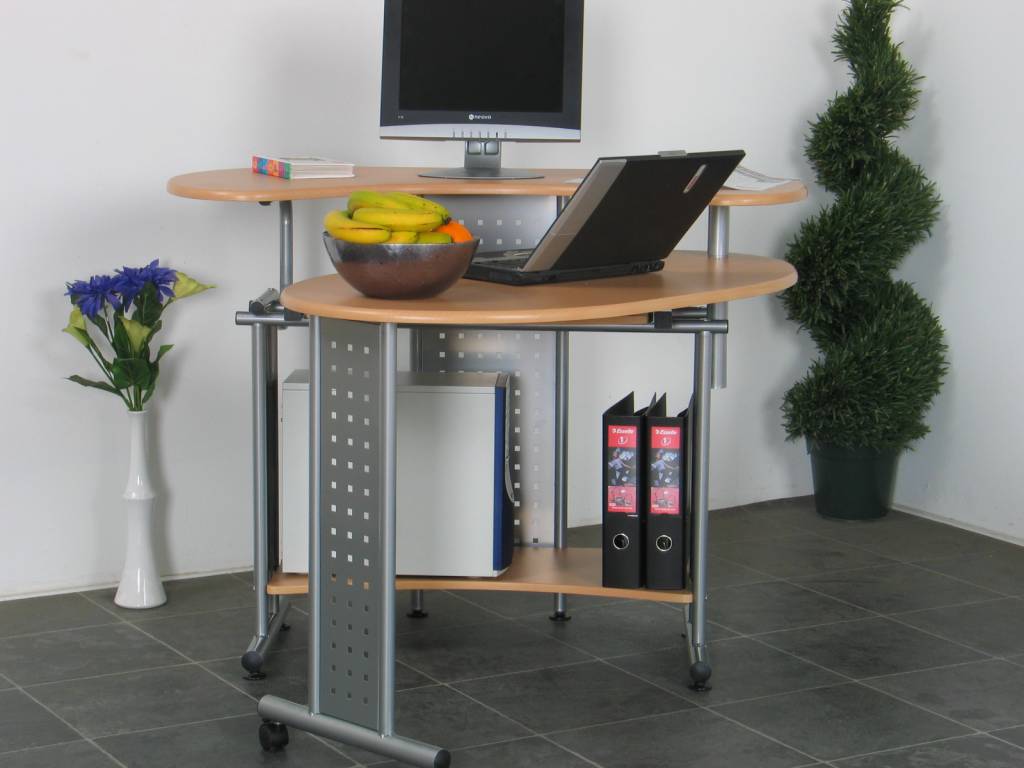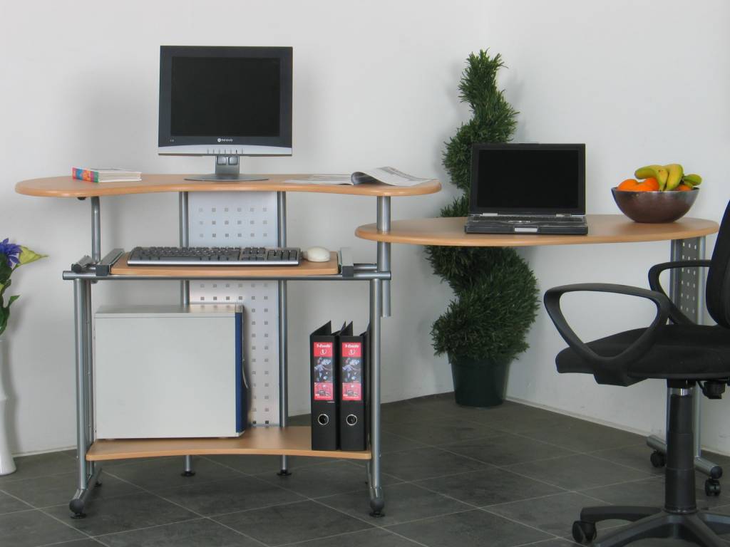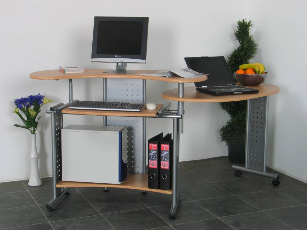 Modern en stijlvol ergonomisch bureau met twee bureaubladen en een uitschuifbare plank voor uw toetsenbord. Heel handig en niet duur!