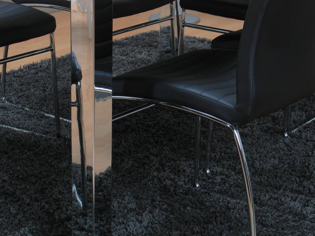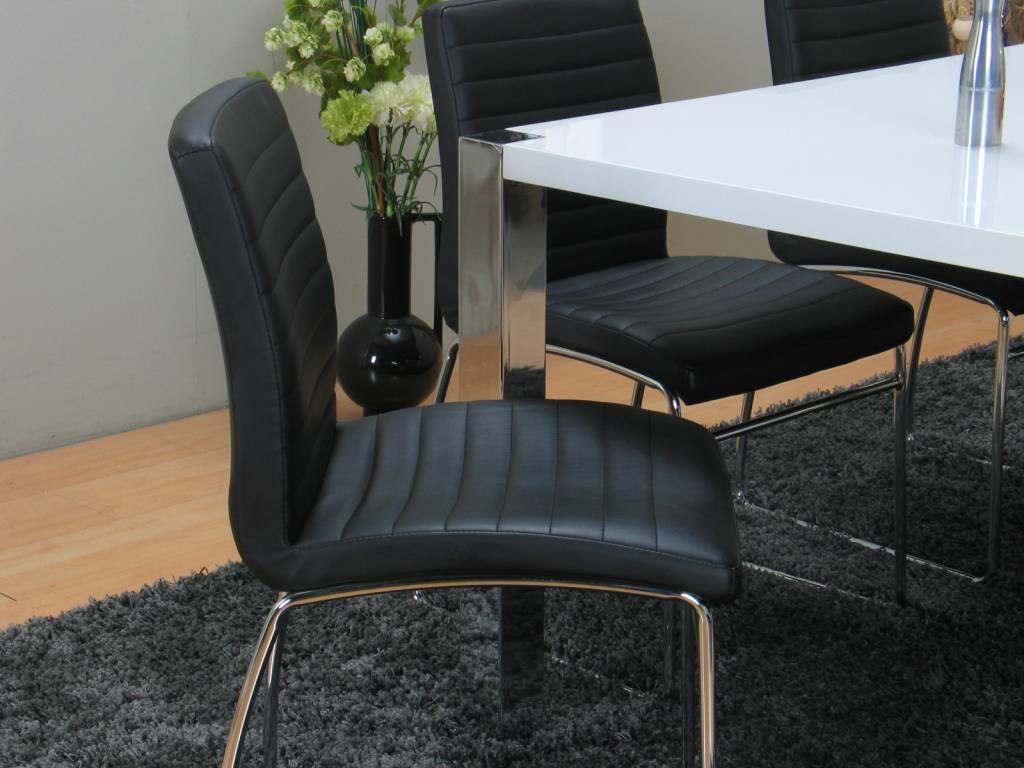 - Stoelen met zwart kunstlederen bekleding en verchroomd metalen onderstel