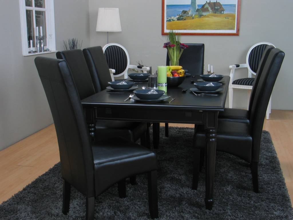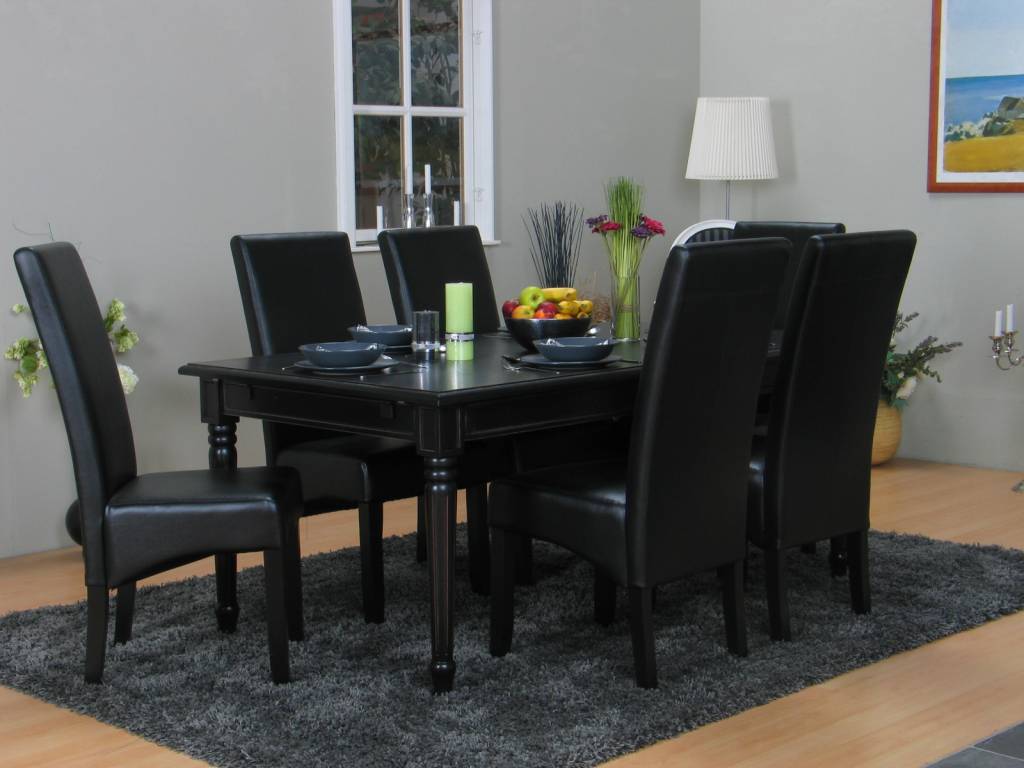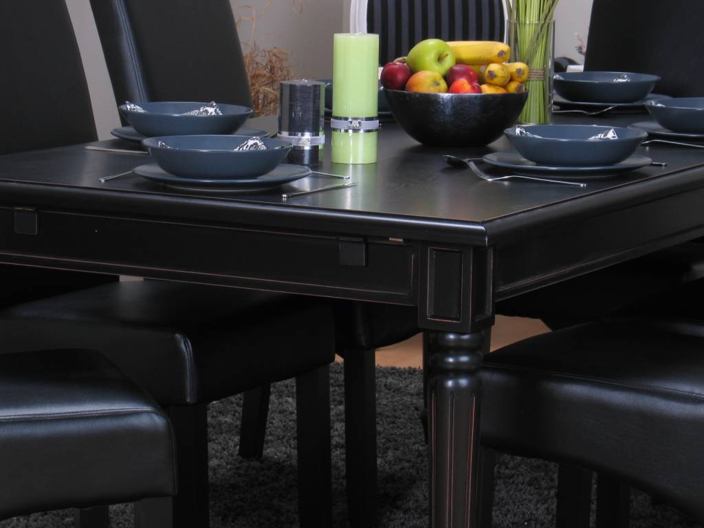 Eethoek zwart Mozart barok tafel met 6 zwarte stoelen