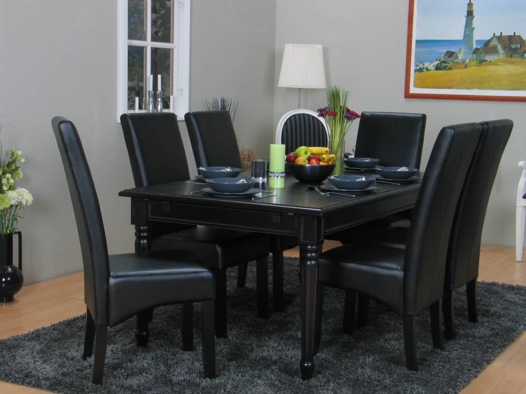 Aanbieding bij Hioshop! Een leuke combinatie. Set bestaande uit een eettafel uit de serie Mozart en inclusief 6 zwarte PU kunstleren stoelen. Een prachtige samengestelde eethoek dus! De tafel en de stoelen zijn ook los verkrijgbaar.