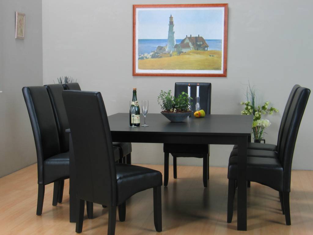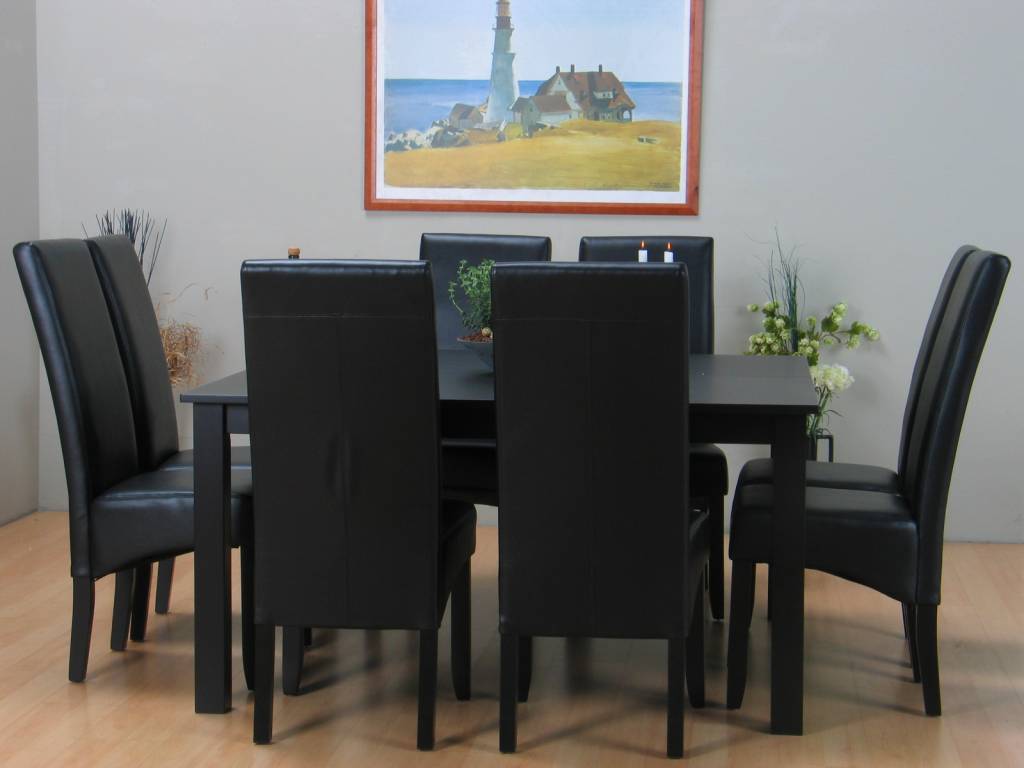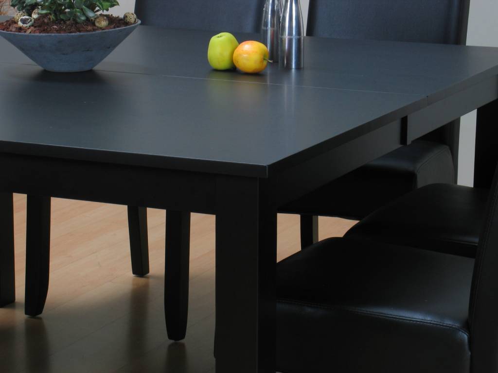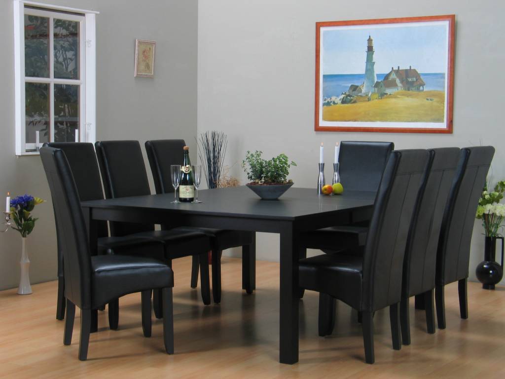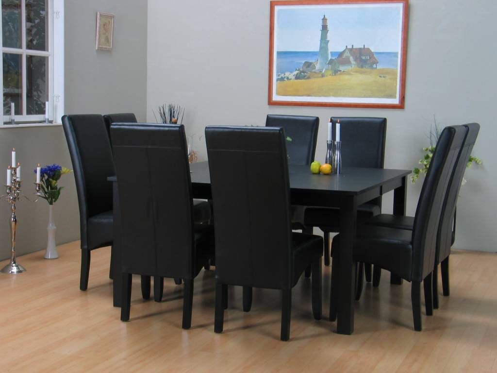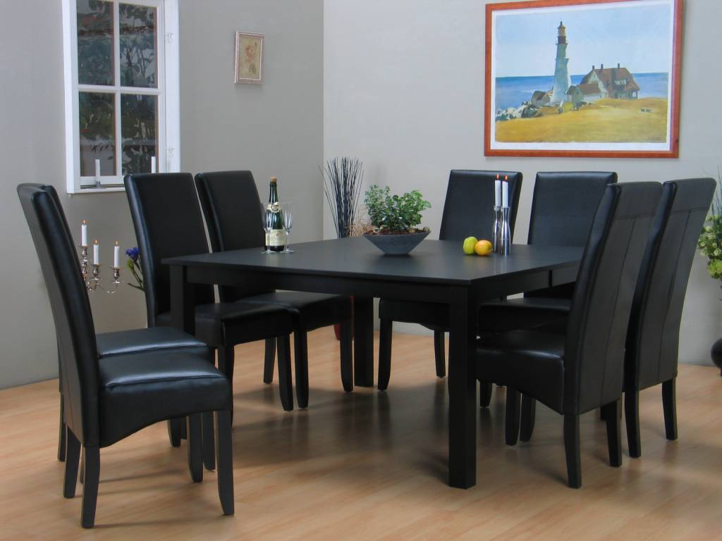 Eethoek zwart tafel met 8 stoelen