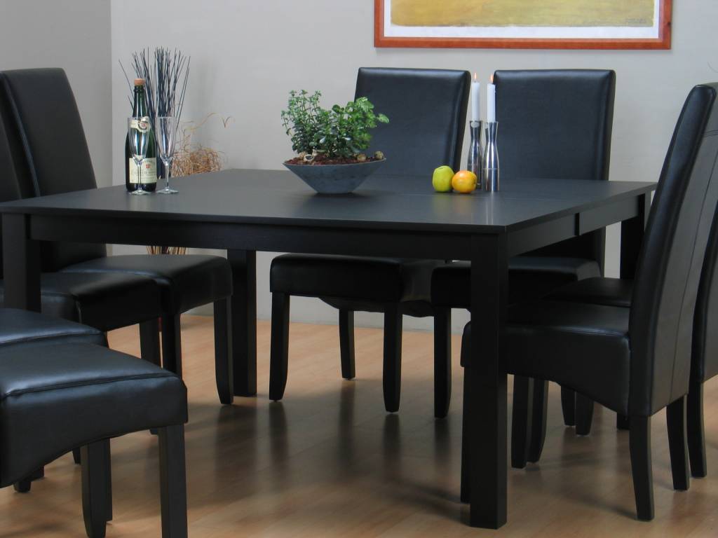 Eethoek, bestaande uit onze vierkante tafel Sirius en 8 eetkamerstoelen Giessen. Bestel deze combinatie dus nu voor een extra scherpe setprijs!