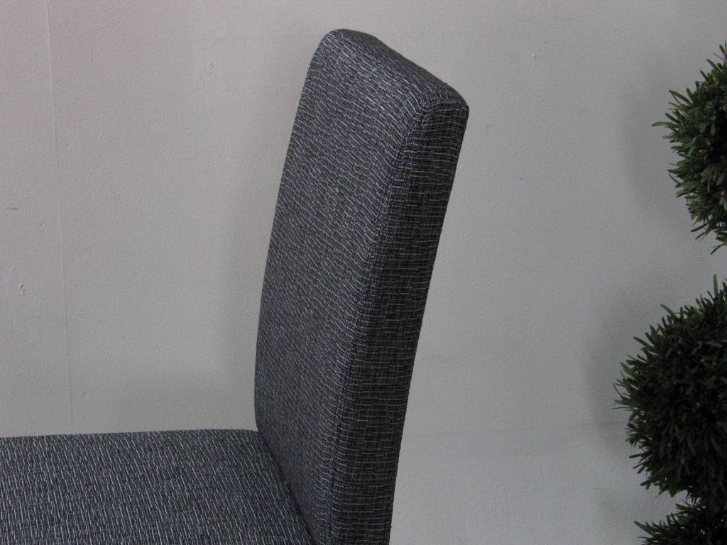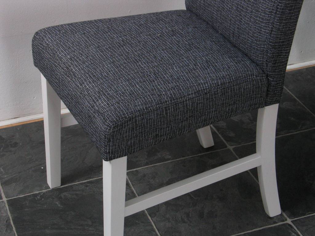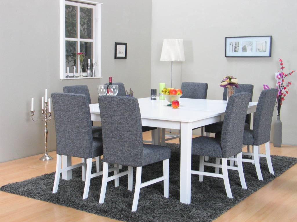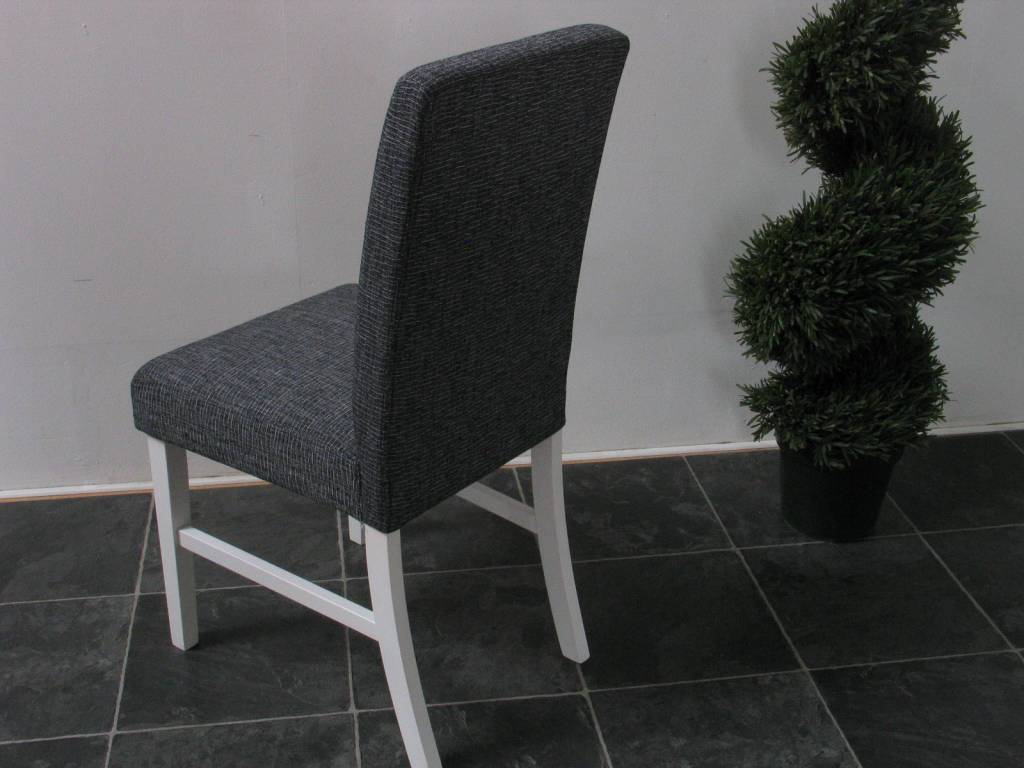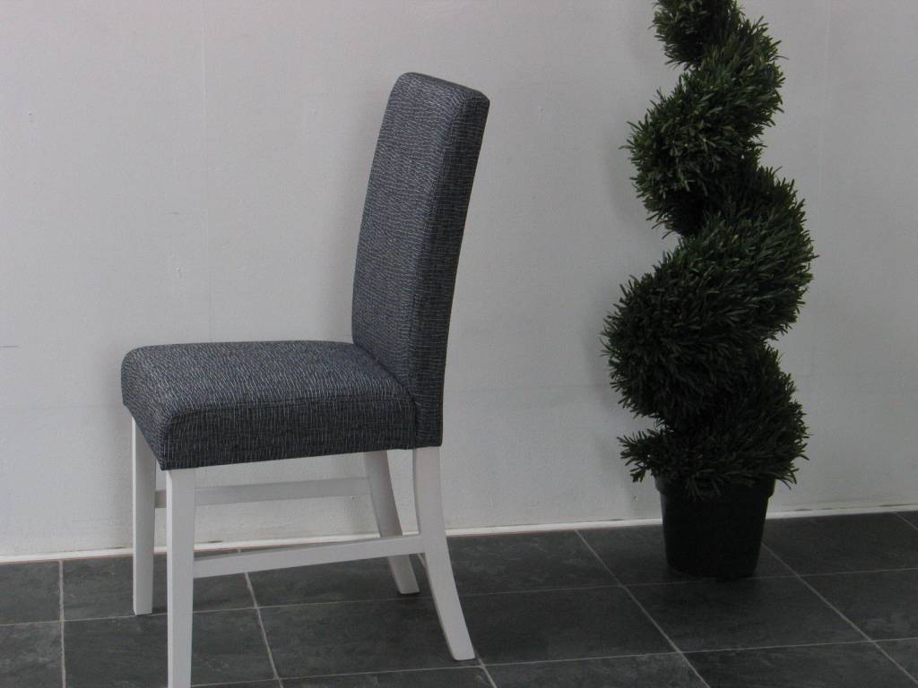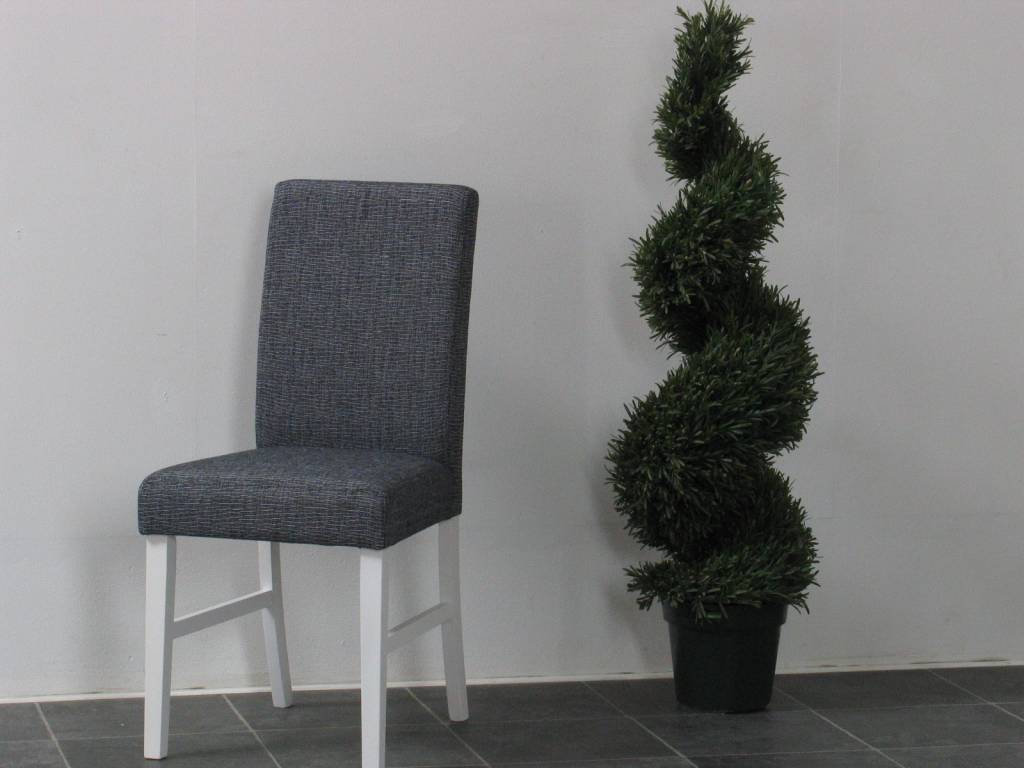 Eetkamerstoel Sirius wit, een tijdloze eetkamerstoel met wit onderstel en zwartgrijze stoffen bekleding. De eetkamerstoel past uitstekend bij de witte vierkante tafel Sirius, ook als set verkrijgbaar.