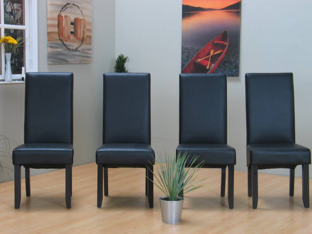 - Zwarte stoelen met zwart kunstleer, 4 stuks