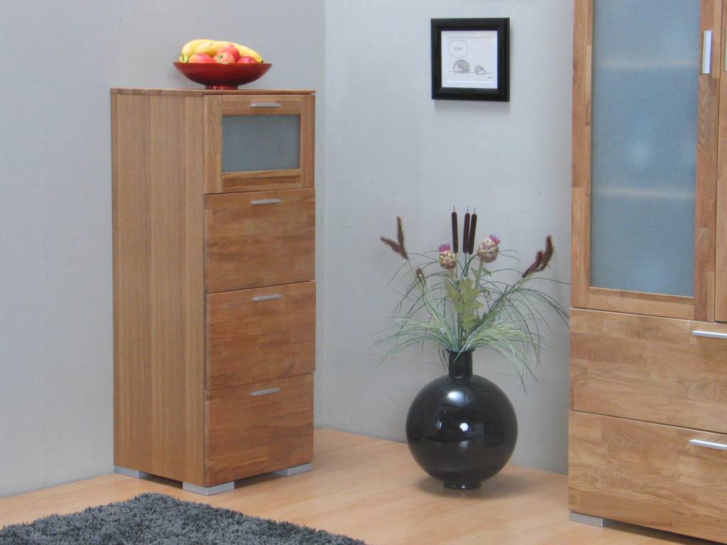 Eiken ladenkast met 4 laden van 120 cm hoog en 45 cm breed. Deze eiken ladenkast maakt onderdeel uit van de eiken serie Helsinki, met fraai modern eiken vingerlasdelen in combinatie met melkglas: leuk wonen hoeft niet duur te zijn!