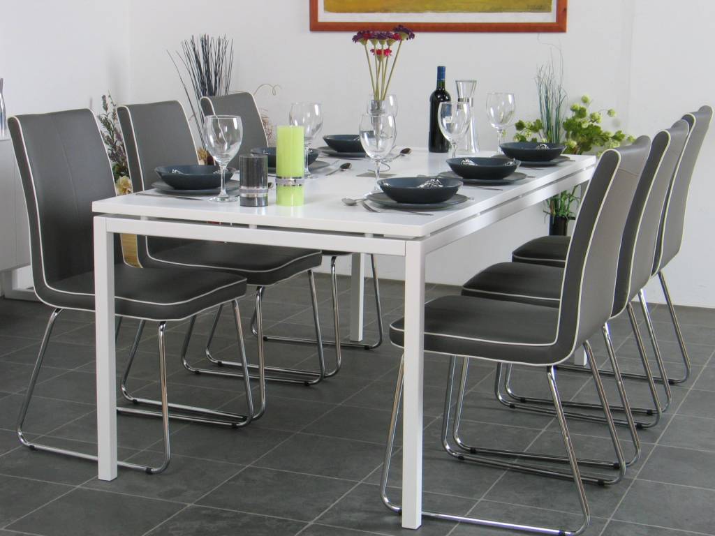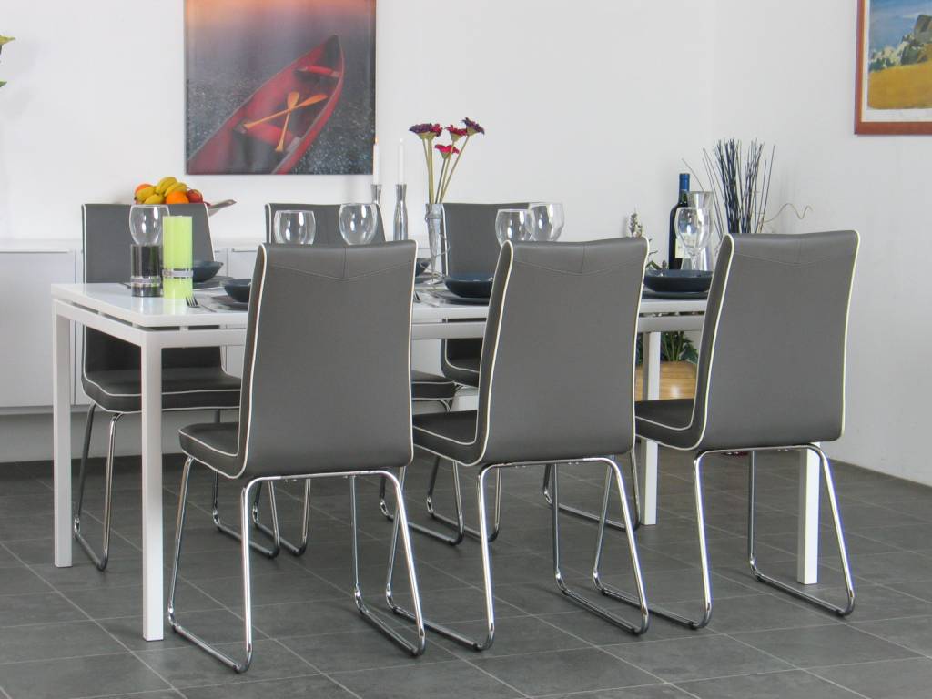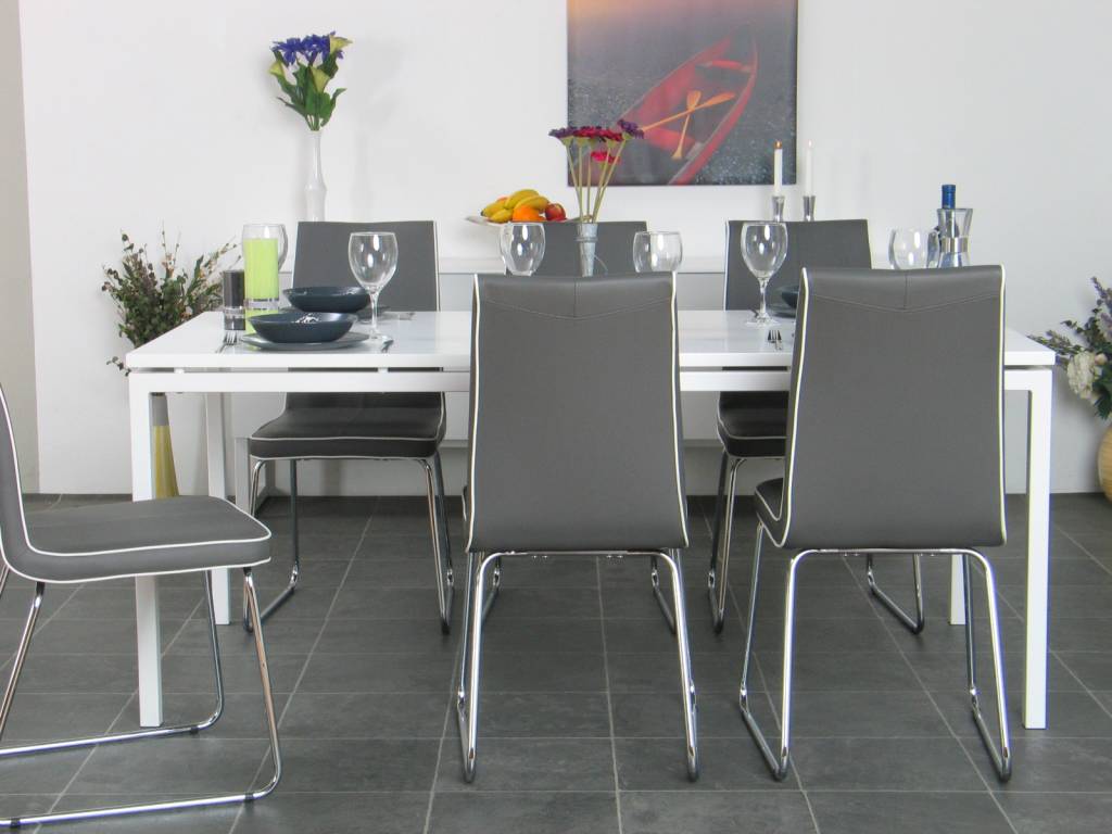 Complete eetkamerset uit de meubelserie Peak! Deze eethoek bestaat uit de moderne witte eetkamertafel met de bijpassende comfortabele grijze stoel Patricia. De stoel is er ook in de kleuren wit en zwart. Leuk in combinatie met Peak dressoirs!