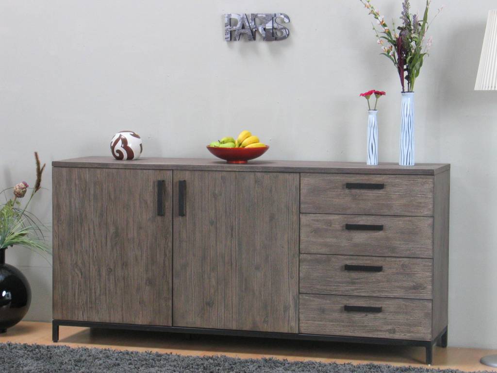Grijs rustiek dressoir Cannes met lades en deurtjes