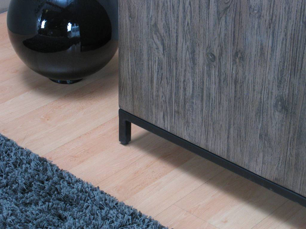 Wanneer u voor het meubel staat heeft u aan de rechterkant van het dressoir 4 schuiflades onder elkaar. Links naast de lades zitten 2 deurtjes met daarachter één brede vaste legplank.
