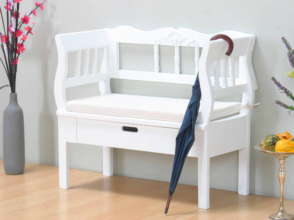 Leuk wit bankje voor bijvoorbeeld in de hal. Gemaakt van massief hout met een witte laklaag en een lade. Ook heeft het bankje een lade om spullen in op te bergen. Wordt inclusief kussen geleverd.