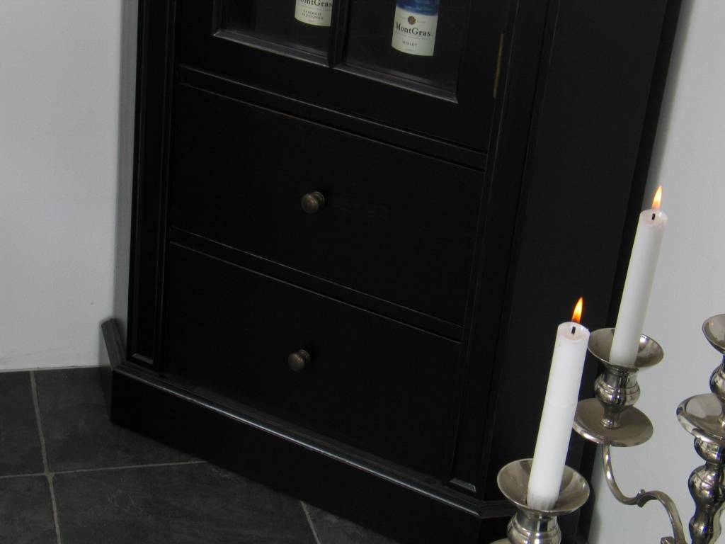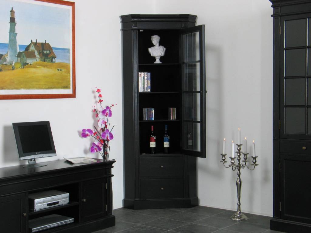 Hoekvitrinekast hoekkast zwart antiek patine barok Mozart