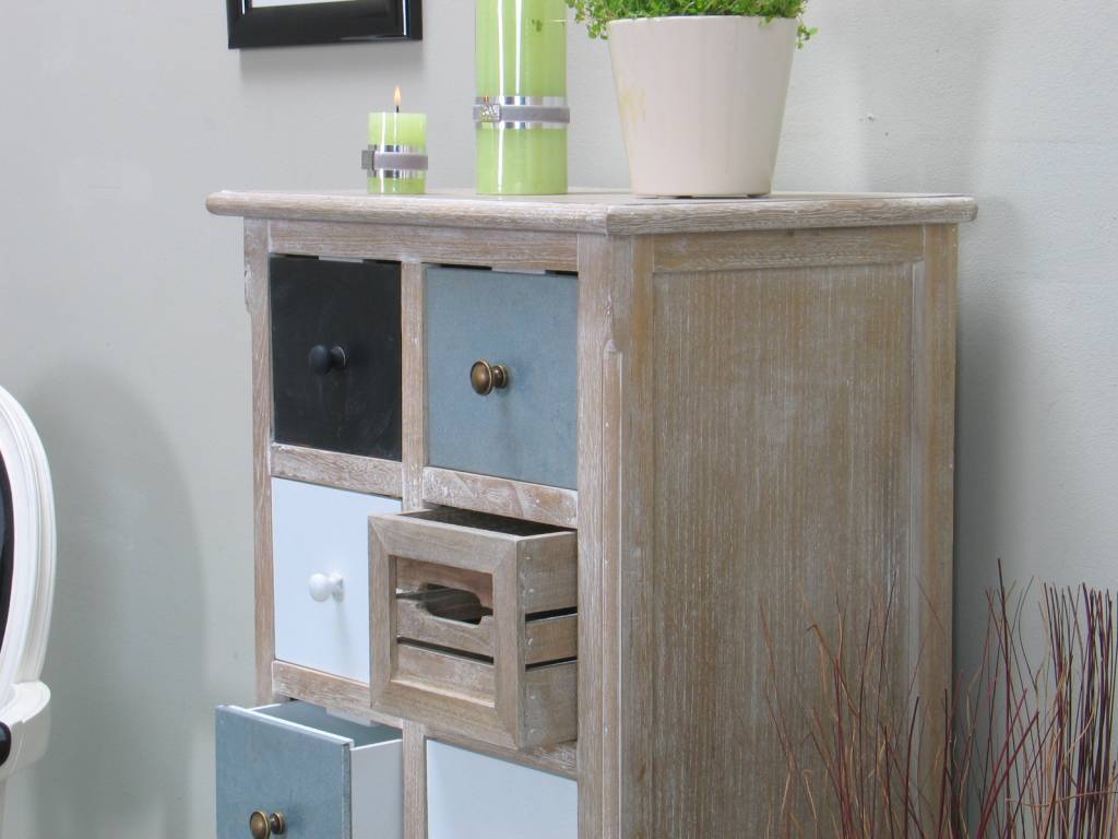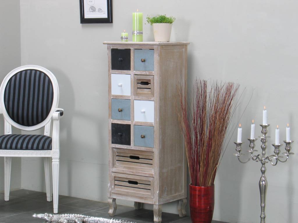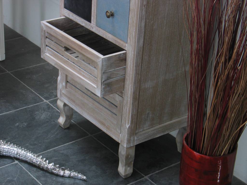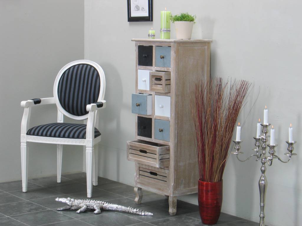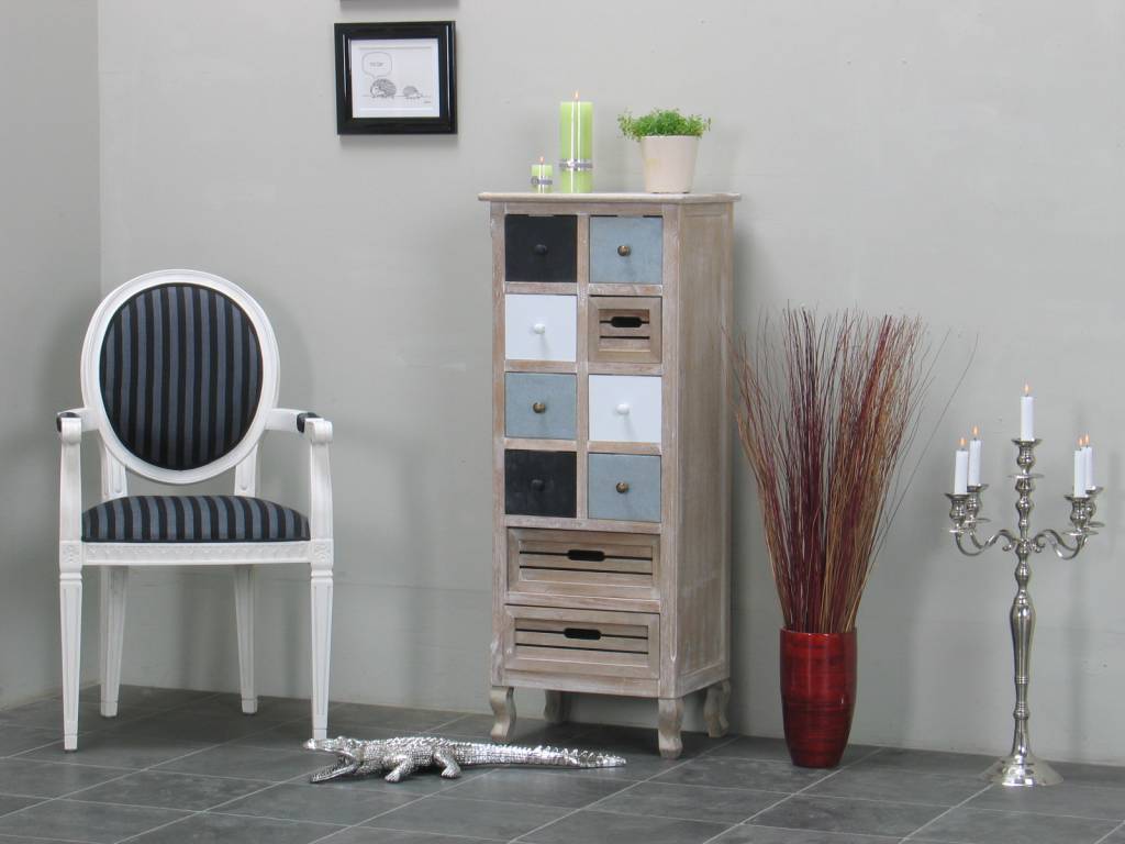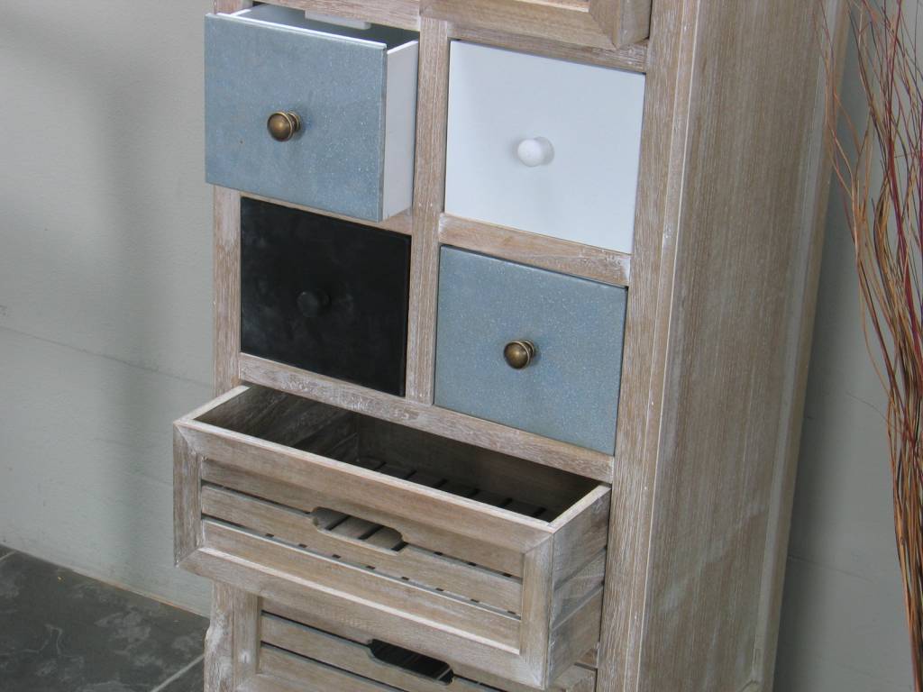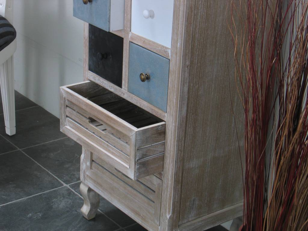 Whitewash ladekast met 10 lades van MDF en MDF met metaal. Uitgevoerd in antieke stijl. De nieuwe woontrend: uniek in vorm en uitvoering!