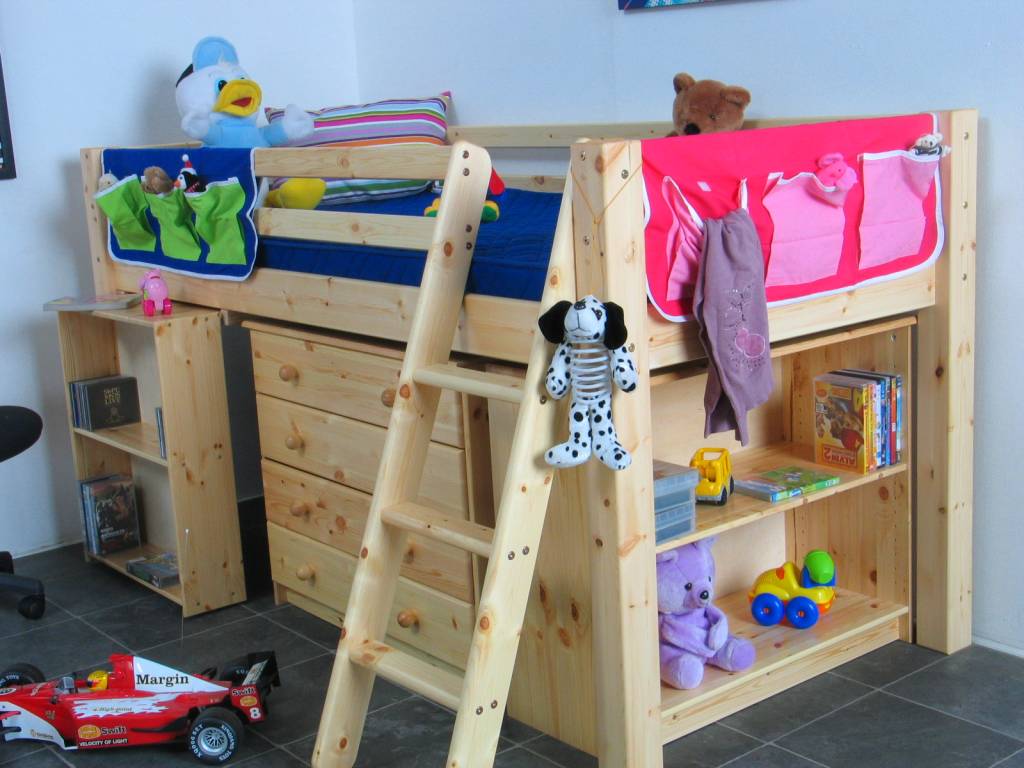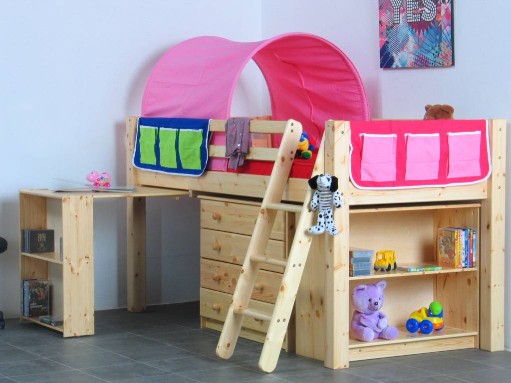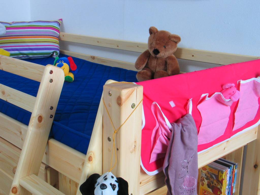 Nieuw voor bij onze hoogslapers en halfhoogslapers: roze hangtas. Met klittenband sluiting – leuk en decoratief, maar ook handig om het bed op te ruimen voor het slapen gaan. Alle knuffels en doekjes direct bij de hand!