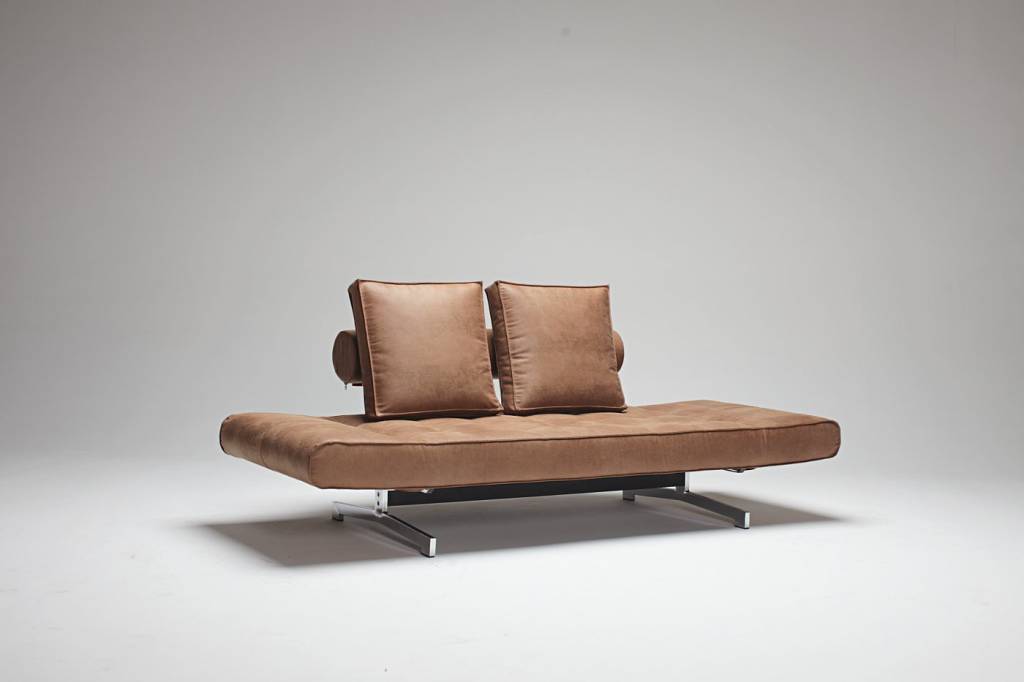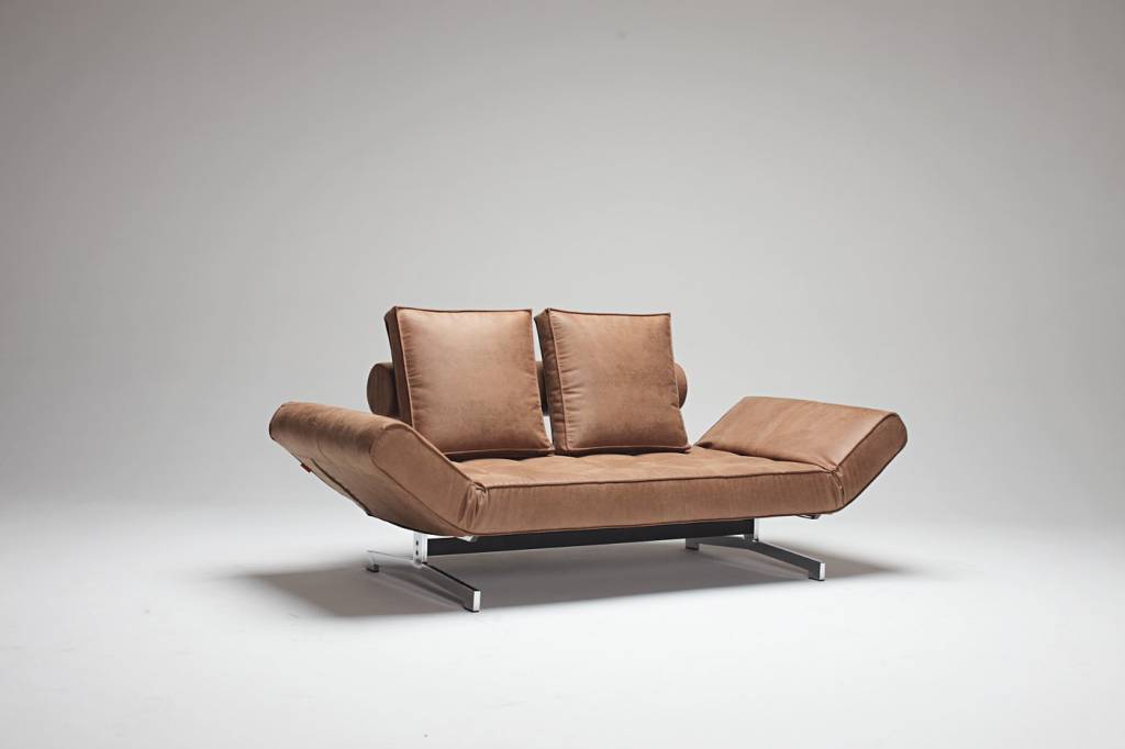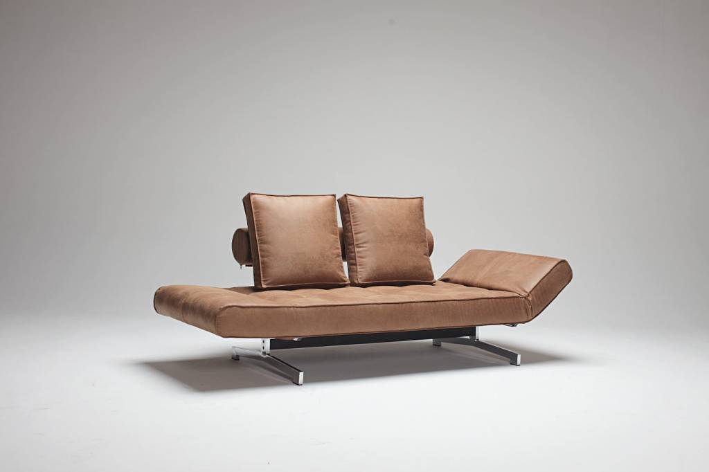 Ghia is een design éénpersoonsslaapbank van Innovation ontworpen door Per Weiss. Echt design voor in uw huis. Deze slaapbank kan in verschillende standen ingesteld worden door eenvoudig de 'zijvleugels' naar beneden of boven te klappen; Sofa, Lounge en Bed.