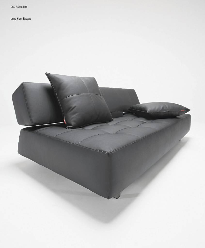 Slaapbank Long Horn, uitgevoerd in zwart PU leder. Slaapmaat van de slaapbank uitgeklapt is 140x210 cm. Een ideale zwarte slaapbank voor 2 personen die werkelijk probleemloos als super design bankstel dienst kan doen. Must have, nergens goedkoper!