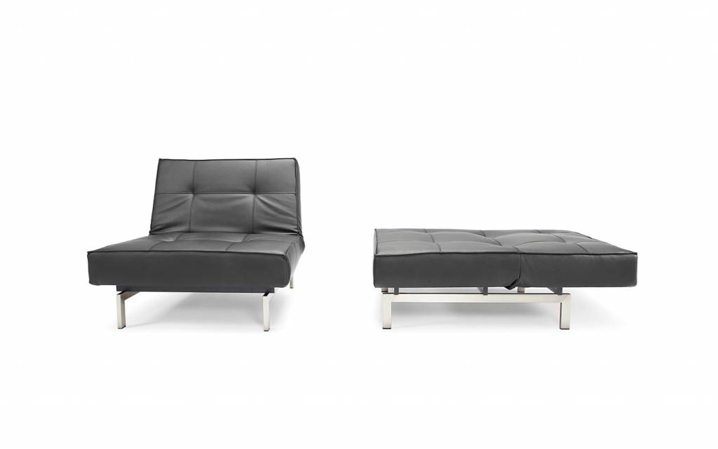 Splitback is één van de meest geliefde slaapstoelen van Innovation. U kunt deze slaapstoel eenvoudig met 1 klik van comfortabele fauteuil veranderen in een eenpersoonsbed. Wanneer u deze slaapstoel combineert met de slaapbank Splitback heeft u verschillende mogelijkheden voor bijvoorbeeld in uw woonkamer als chaise longue (zie de foto's).