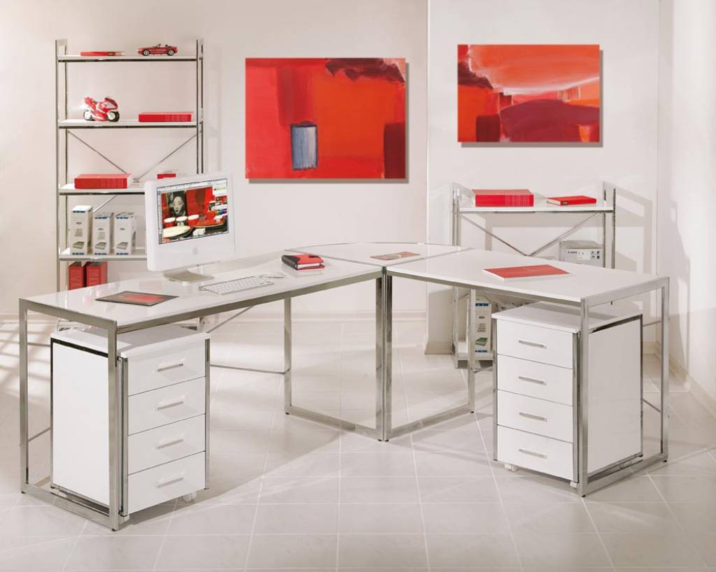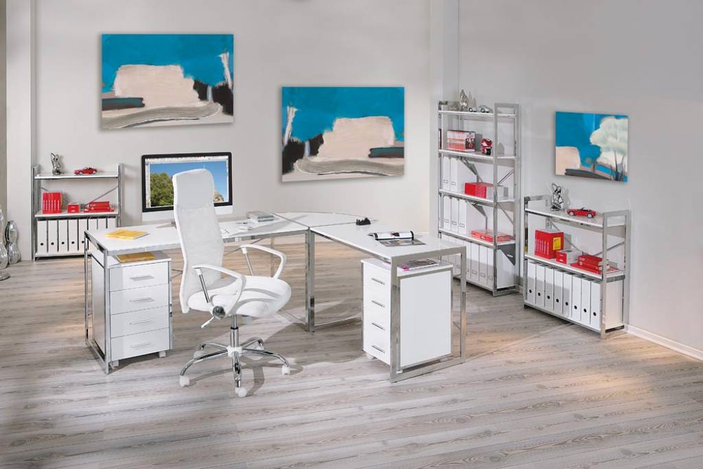 Nu bij Hioshop: kantoorset, bestaande uit een stijlvol hoekbureau, een ladeblok op wieltjes en een comfortabele stoel. Het bureau bestaat uit 2 losse bureaus en een hoekdeel, dus op te stellen zoals u zelf wilt!
