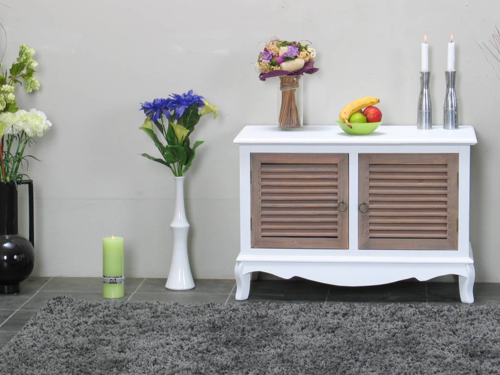 Vermelde prijzen zijn uiteraard inclusief BTW en gelden per omschreven meubel, niet voor eventuele decoraties.Laag dressoir wit antiek gepatineerd