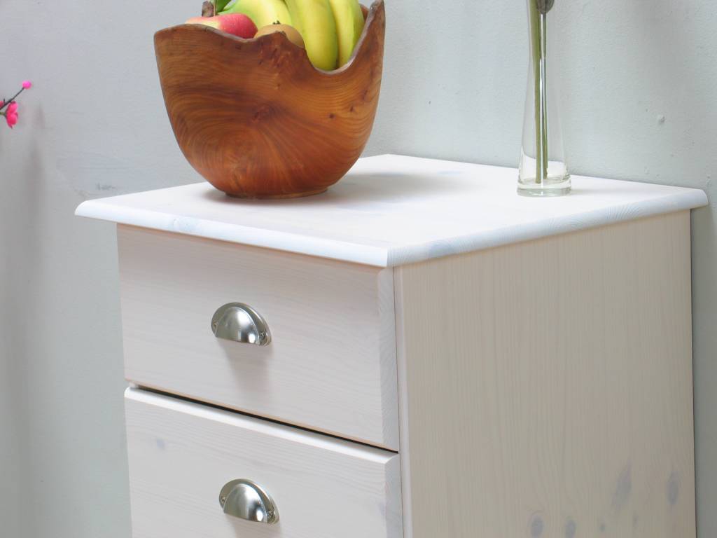 Mooi compact ladekastje van wit grenenhout met markante handgrepen. Koop dit ladekastje als losstaand kastje of in combineer met een van de dressoirs uit de serie Terra: lekker variëren met Hioshop!