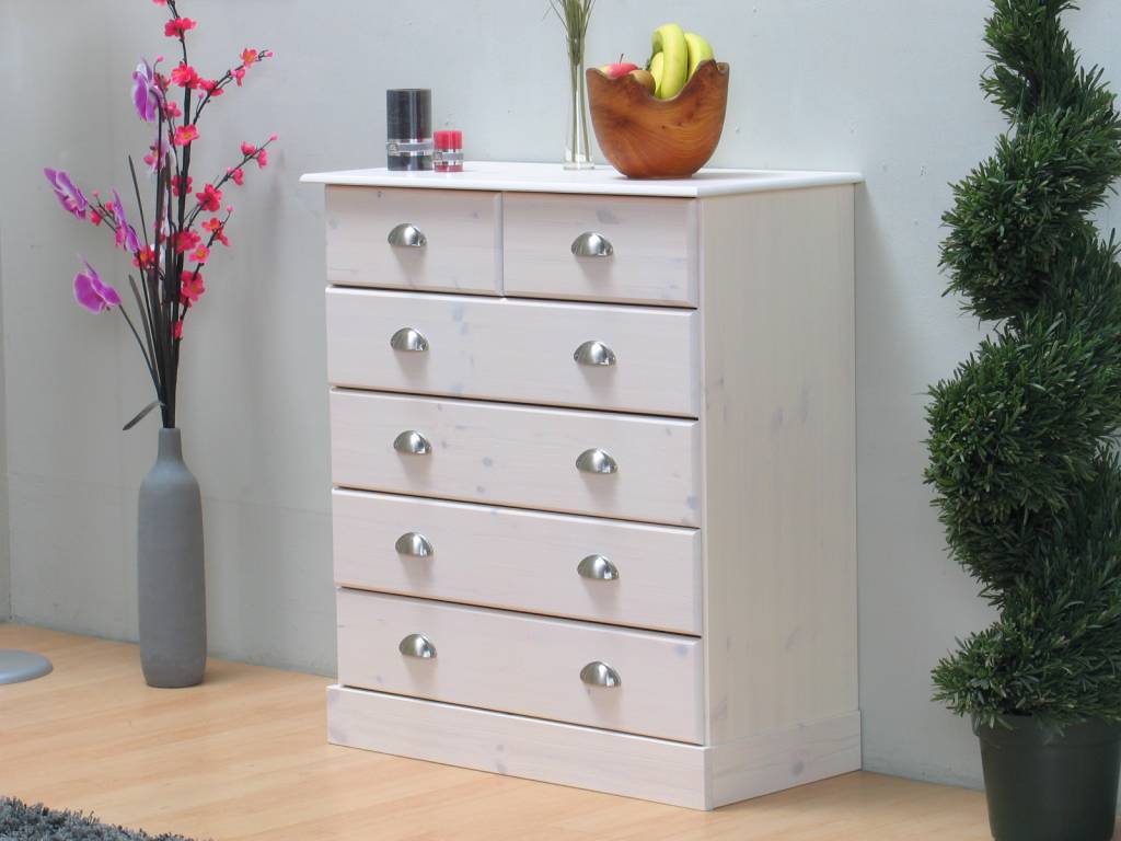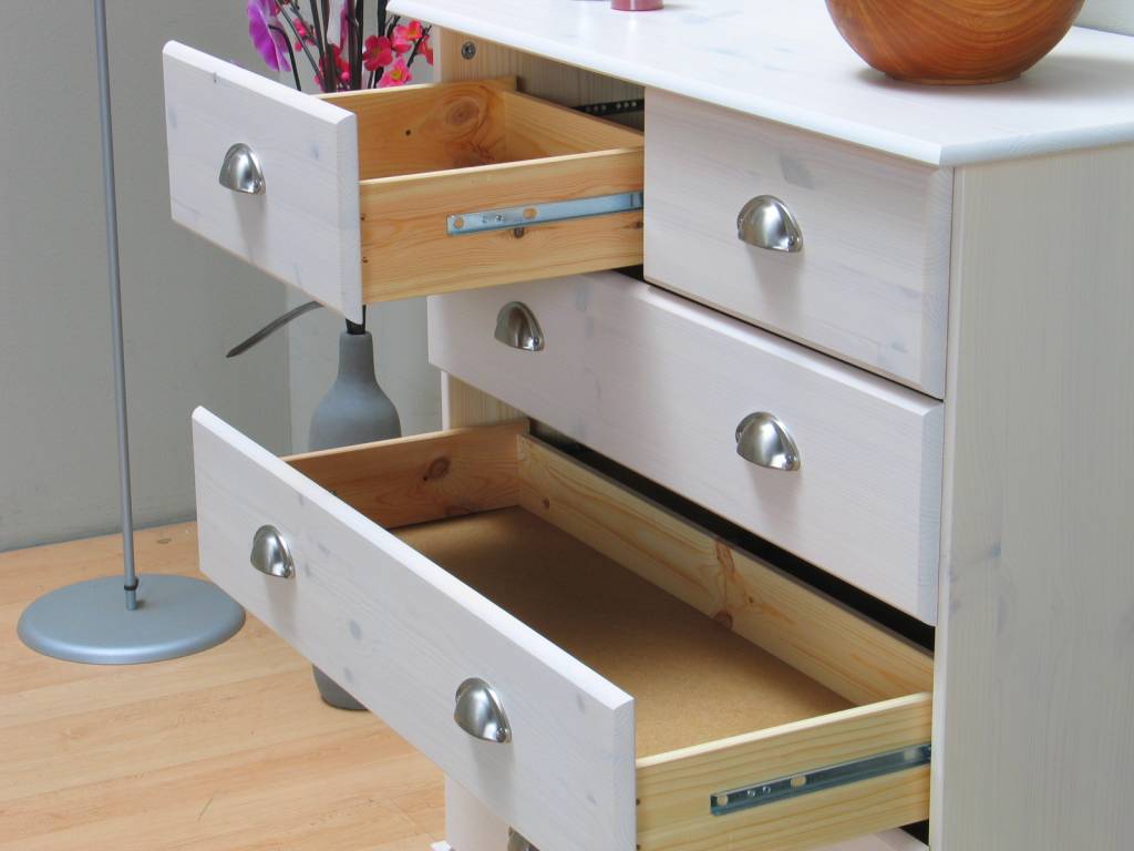 De kommode bestaat uit 4 grote (brede) lades met daarboven 2 kleine lades naast elkaar.