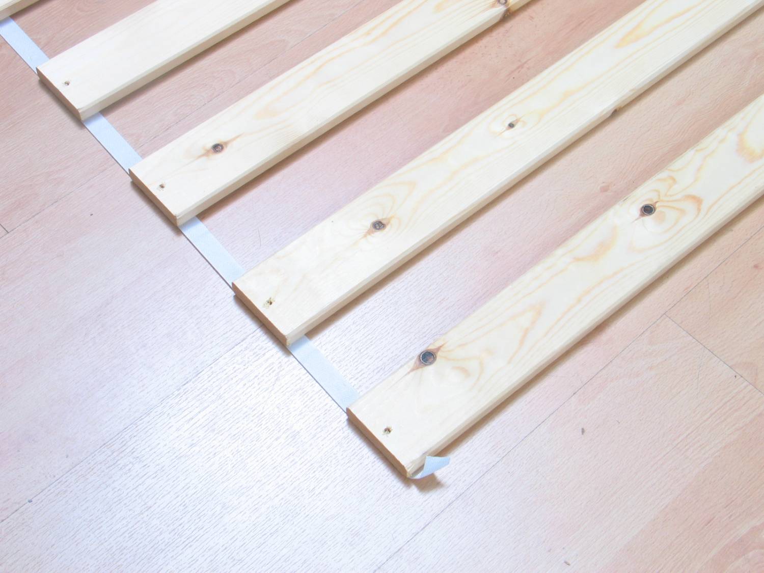 - Grenen latten aan een touw.