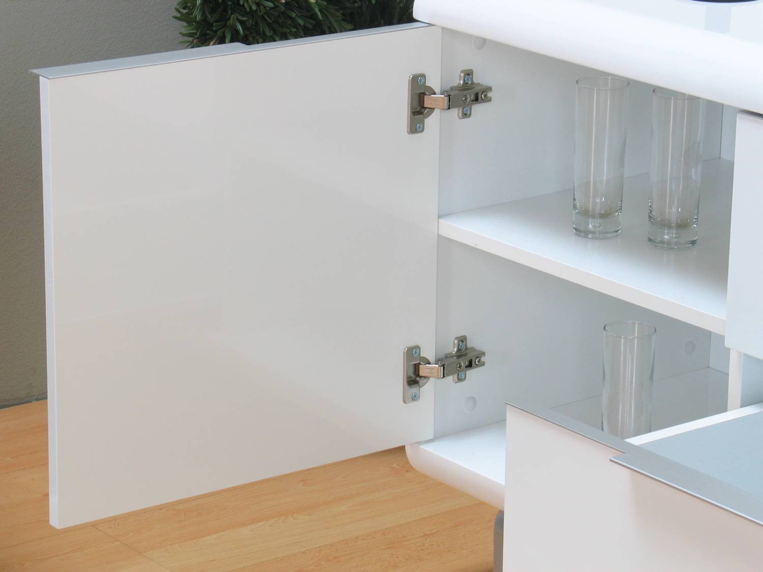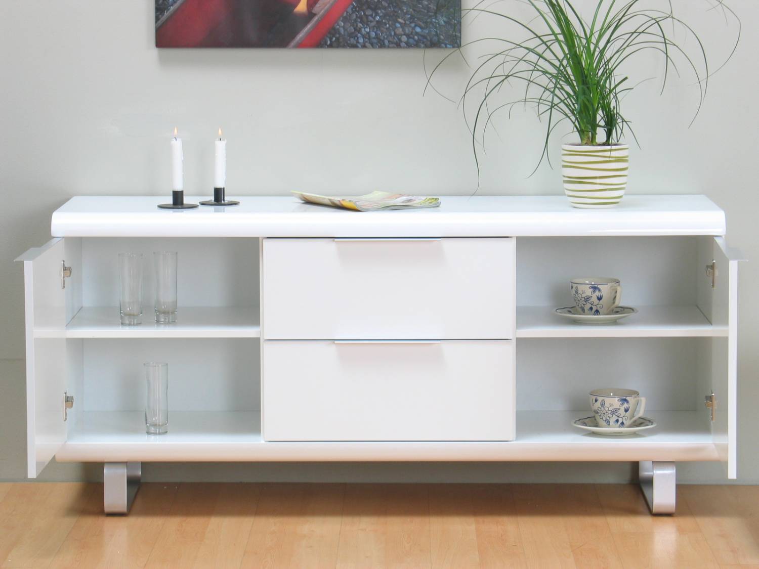 Wit hoogglans dressoir voor een mooi prijsje! De hoogglans laklaag is zeer netjes afgewerkt zoals op de foto's te zien is. Het meubel heeft metalen 'beugels' als onderstel, naar Scandinavisch design.
