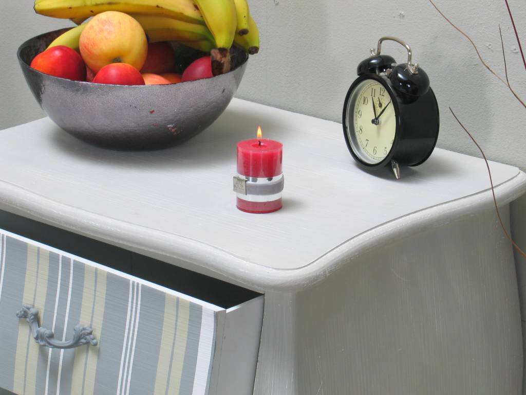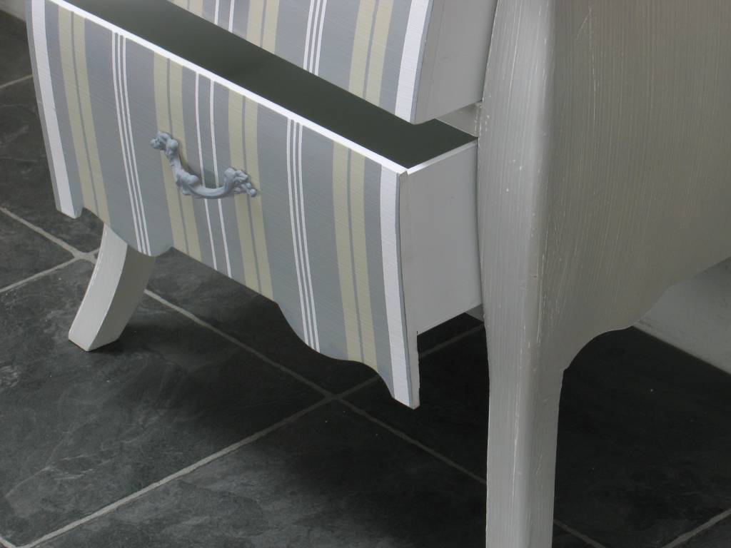 Te gebruiken als nachtkastje of als bijzettafel! Kleurrijk geverfd en gelakt tafeltje van paulowniahout en MDF. Past goed bij de overige meubelen uit dezelfde serie!