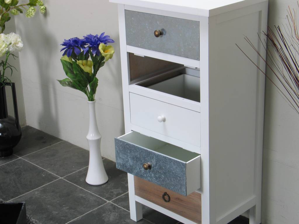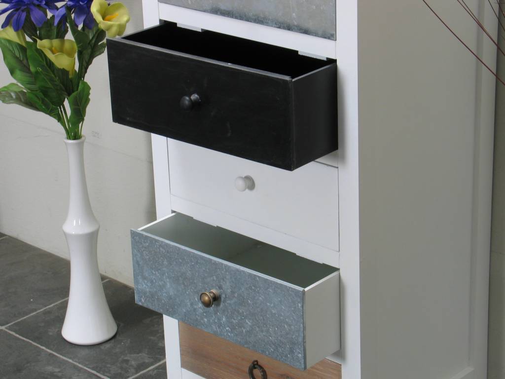 Leuke smalle ladekast die in elke ruimte goed tot zijn recht komt! Gemaakt van wit geverfd en gelakt paulowniahout en MDF. Past goed bij de overige meubelen uit de gelijknamige serie!