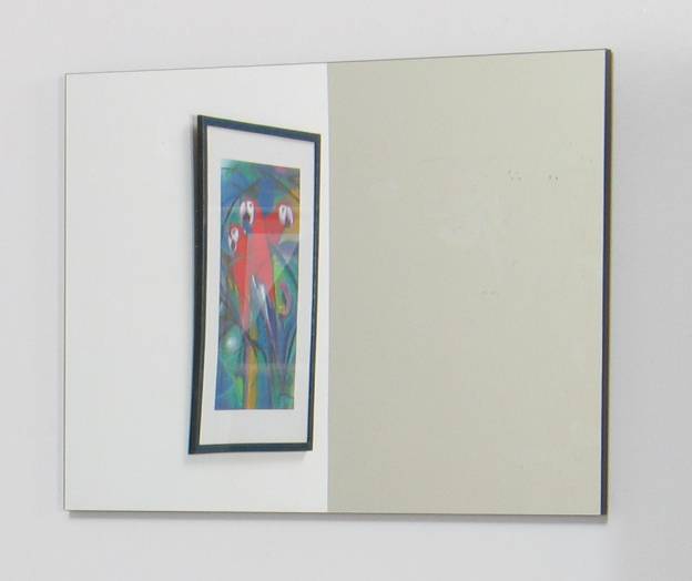 Heldere spiegel van 80x60 cm, bijvoorbeeld voor in uw badkamer, op een plaat afgewerkt met donkere walnootkleurige fineerlaag.