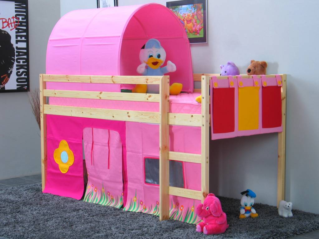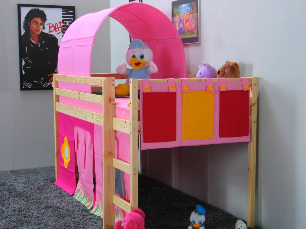 Roze katoenen opbergtas, geschikt voor gebruik met onze (half)hoogslapers. Een leuke accessoire voor het bed dus!