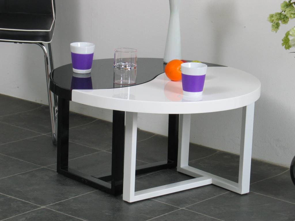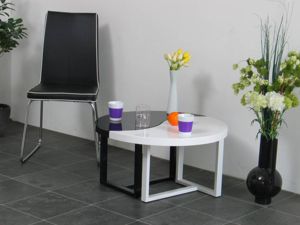 Salontafel rond zwart wit Yin Yang deelbaar MDF