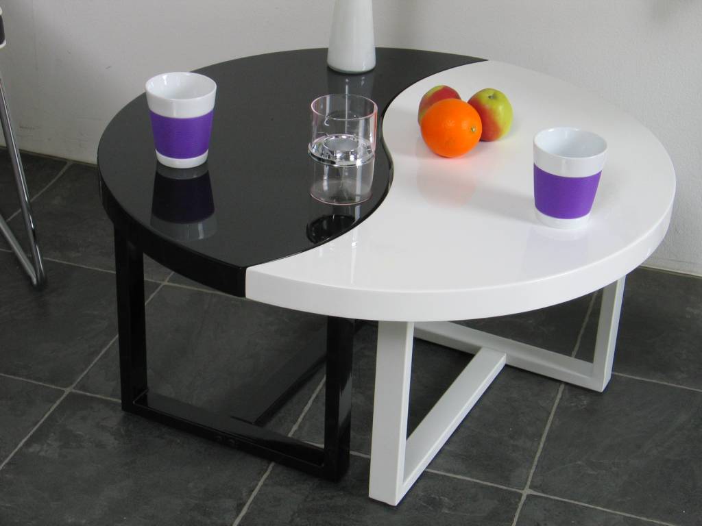 Leuke deelbare salontafel Yin Yang, gemaakt van wit en zwart gelakt MDF!