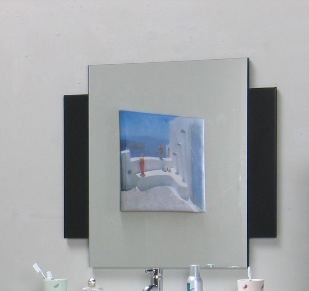 Spiegel: 80 x 70 cm (4mm dik op een plaat van 12 mm gemonteerd)