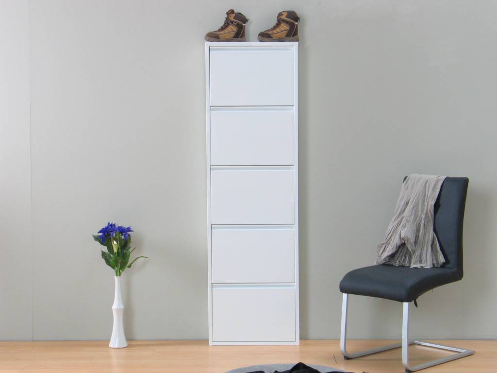 Witte schoenenkast met maar liefst 5 vakken, voor al uw schoeisel. Ruimte voor 10-15 paar schoenen, afhankelijk van het type en de maat. Vast laag geprijsd: nergens goedkoper! Ook verkrijgbaar in het zwart, en in een variant met 3 of 4 vakken.