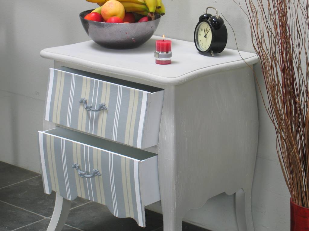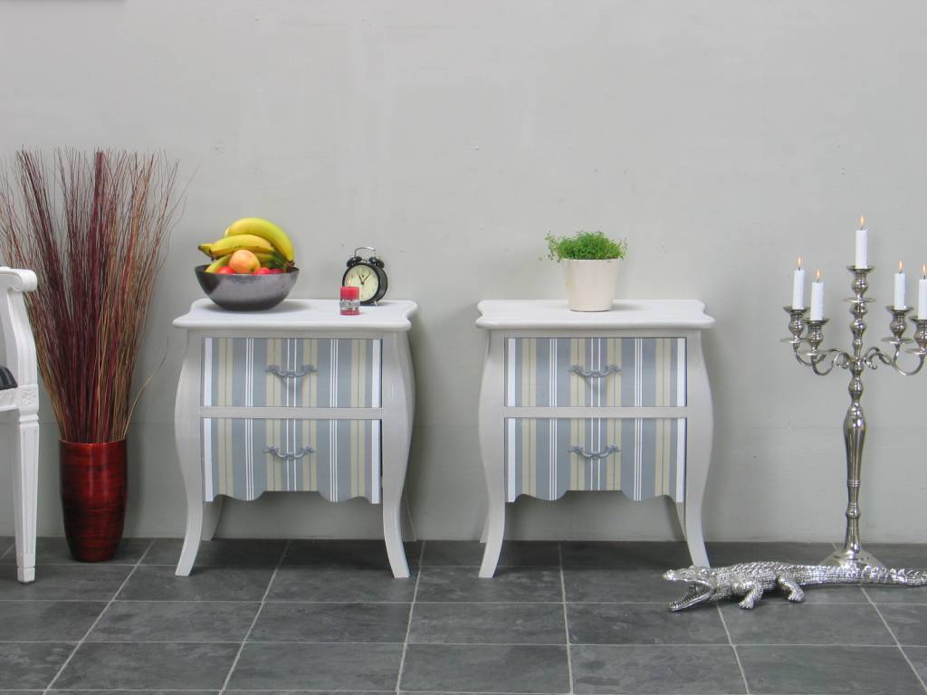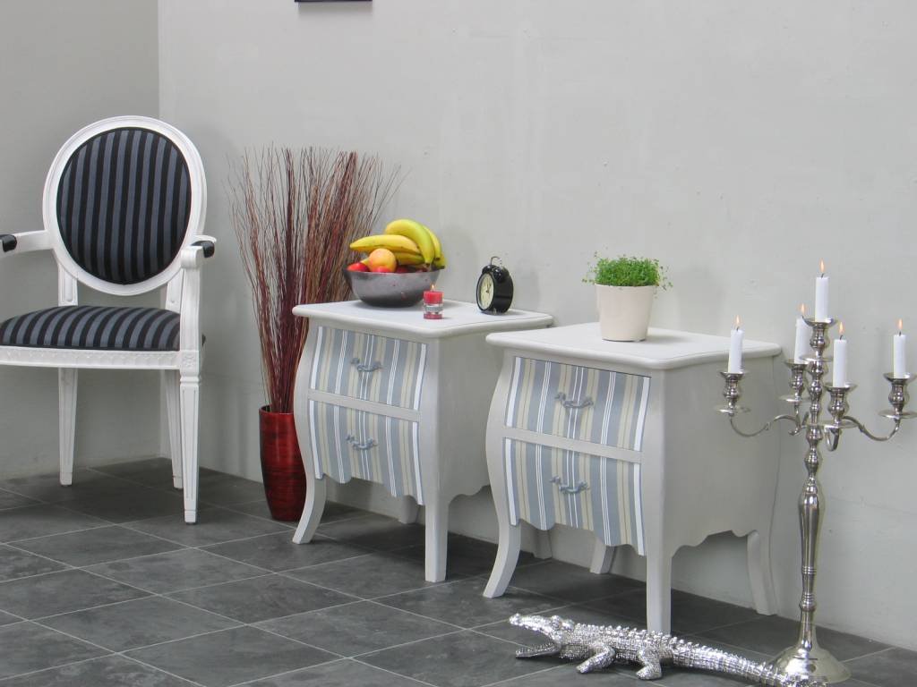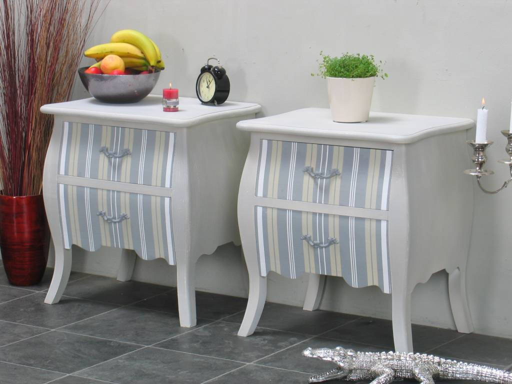 Leuke decoratief gekleurde nachtkastjes uit de serie Bilbao. Worden opgebouwd geleverd: uitpakken en neerzetten dus! Uitgevoerd in antieke stijl.