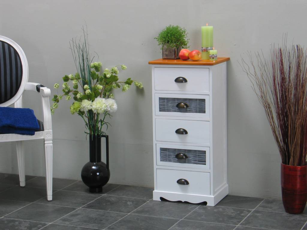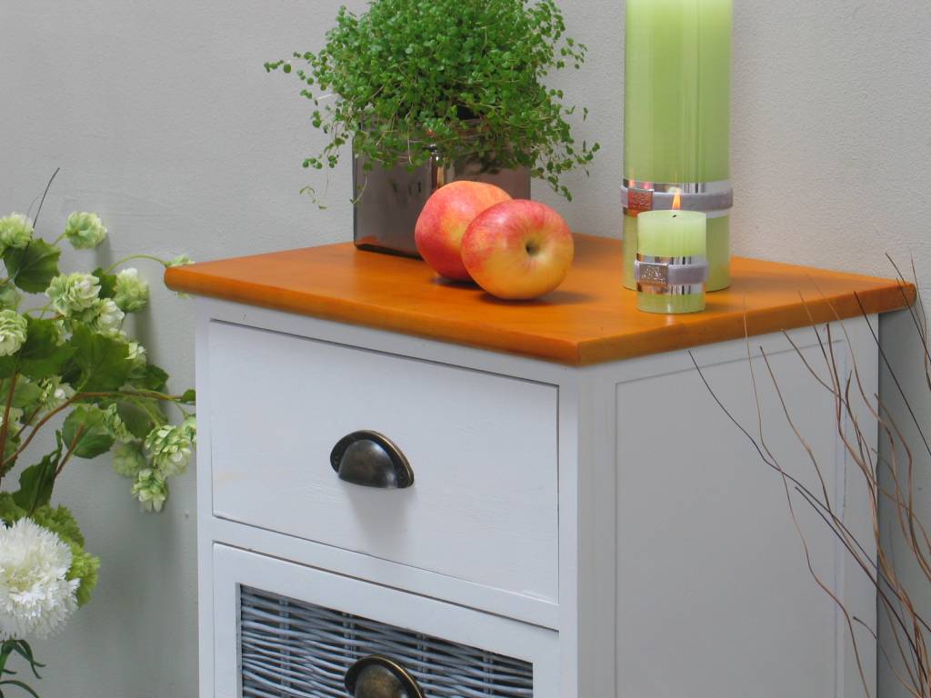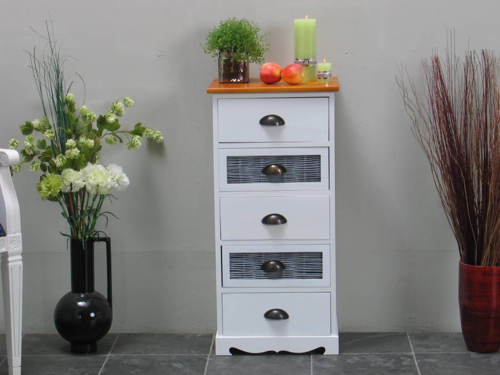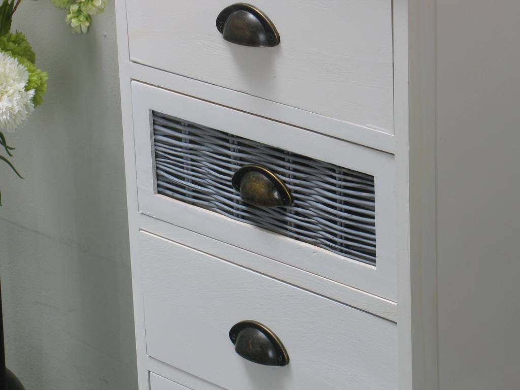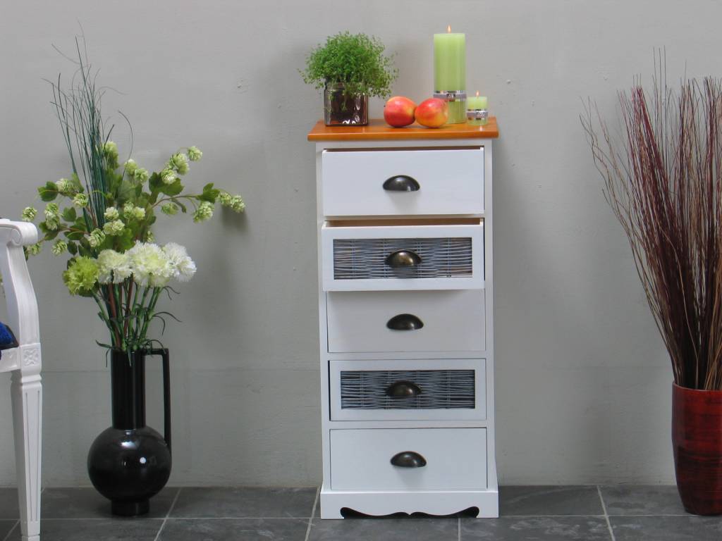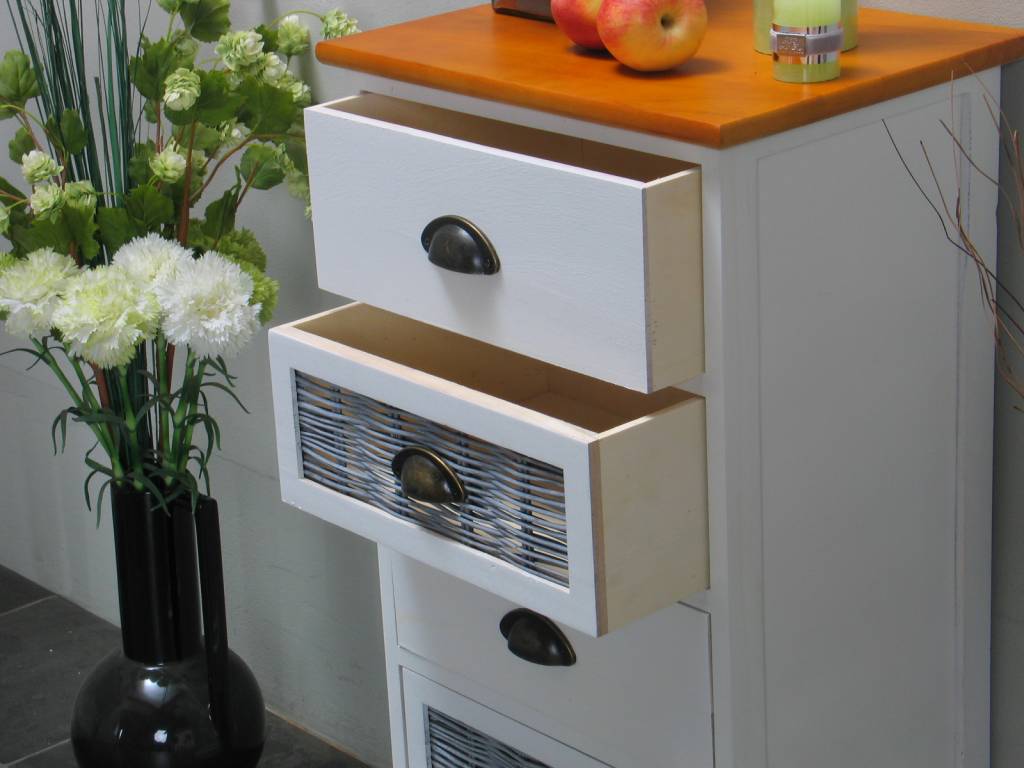 - 3 houten lades; 2 van de lades hebben rotan "greywash"-kleur front (de 5 lades zijn qua volgorde naar wens te monteren)