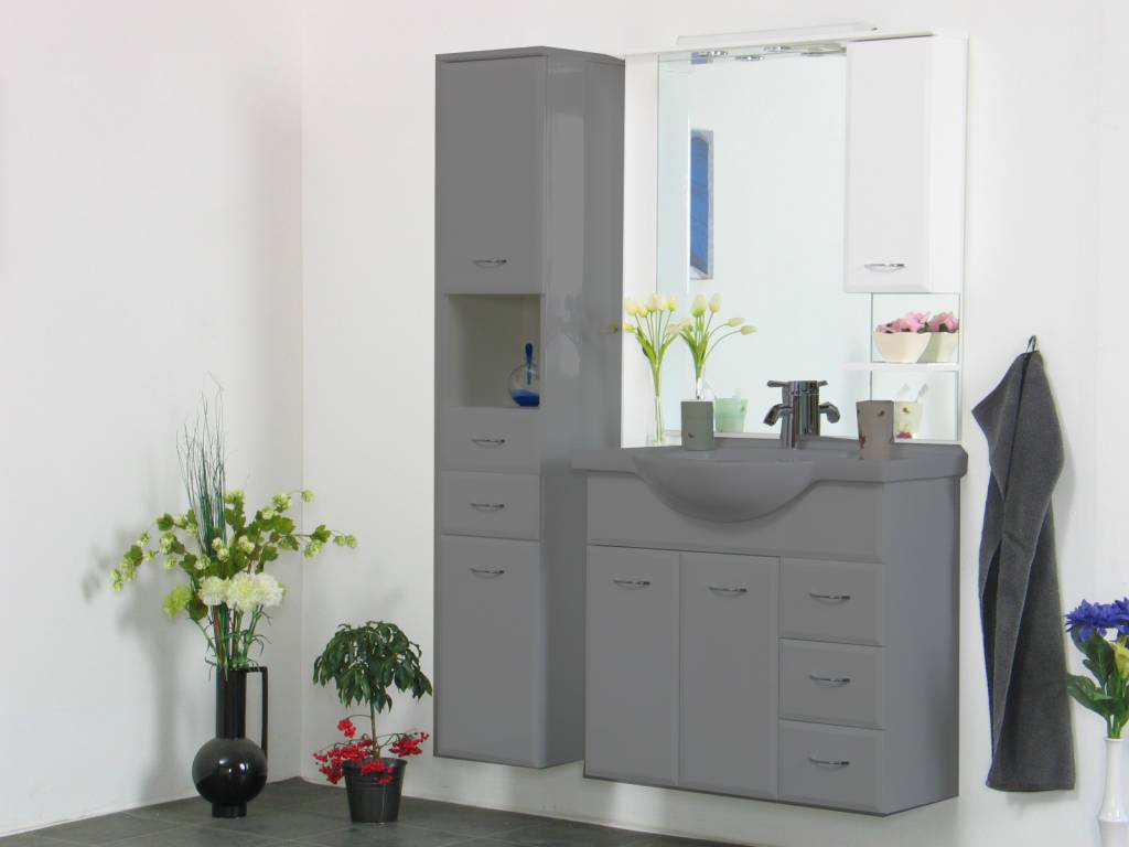 Let op: dit aanbod omvat de spiegel met kastje rechtsboven; het grijze badmeubel zelf is niet inbegrepen. De set is ook in zijn geheel verkrijgbaar. Neem bij twijfel gerust contact met ons op!