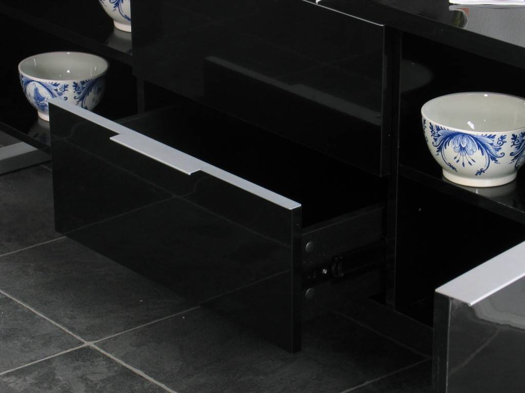 - MDF, zwart hoogglans gelakt