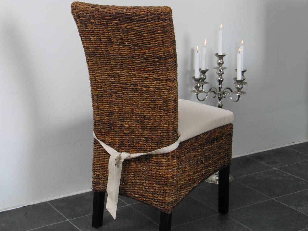 Prachtige stoel van gevlochten bananenblad, nu los verkrijgbaar bij uw online meubel winkel! De stoelen zijn gemaakt van gevlochten bladeren van de bananenplant met een hardhouten onderstel. Inclusief kussen!